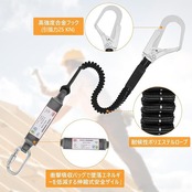 軽量胴ベルト設計:安全帯 胴ベルト 新規格 高強度ポリエステル製(幅45mm/厚1.2mm)、耐摩耗・耐高温、1.7m伸縮ランヤード付き