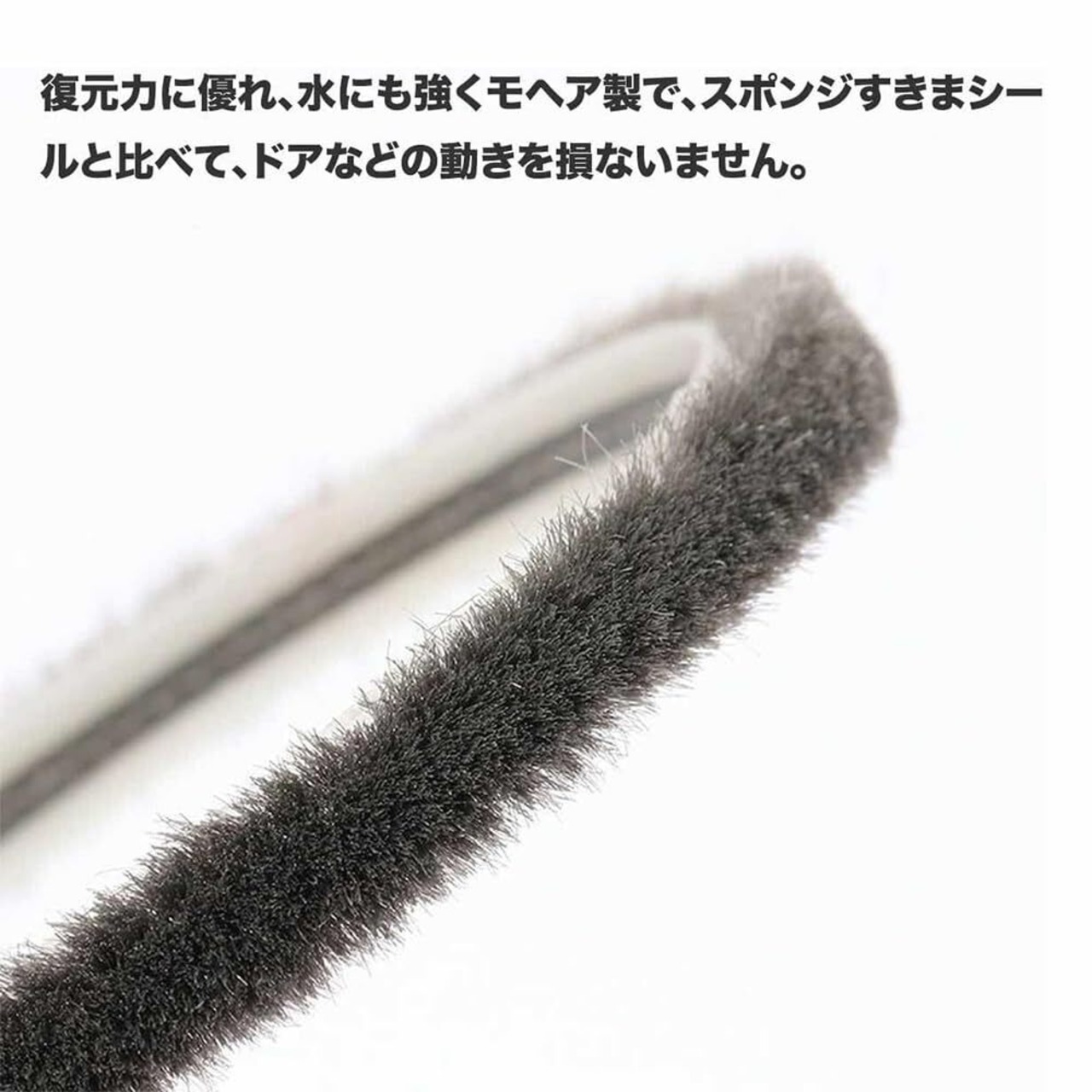 【優れた耐久性/気密性】高密度な毛足で弾性も富んでいてドアや,摩擦に強く、型くずれにくく、復元力にも優れているので長い間に安定した性能を保ち。ソフトで復元力があるモヘアタイプなので、スポンジ隙間テープより柔らかい、柔軟にフィットして、ドアや窓などの動きも損ない。