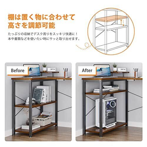 【ラック付きデスク】デスクの足元には一体型のラックが備え、本や書類などを使いたい時にサッと取り出せます。また、L字型のデザインで部屋のコーナーを最大限に活用でき、ご家庭でもオフィスでも、日常の操作に十分なスペースを確保できます。