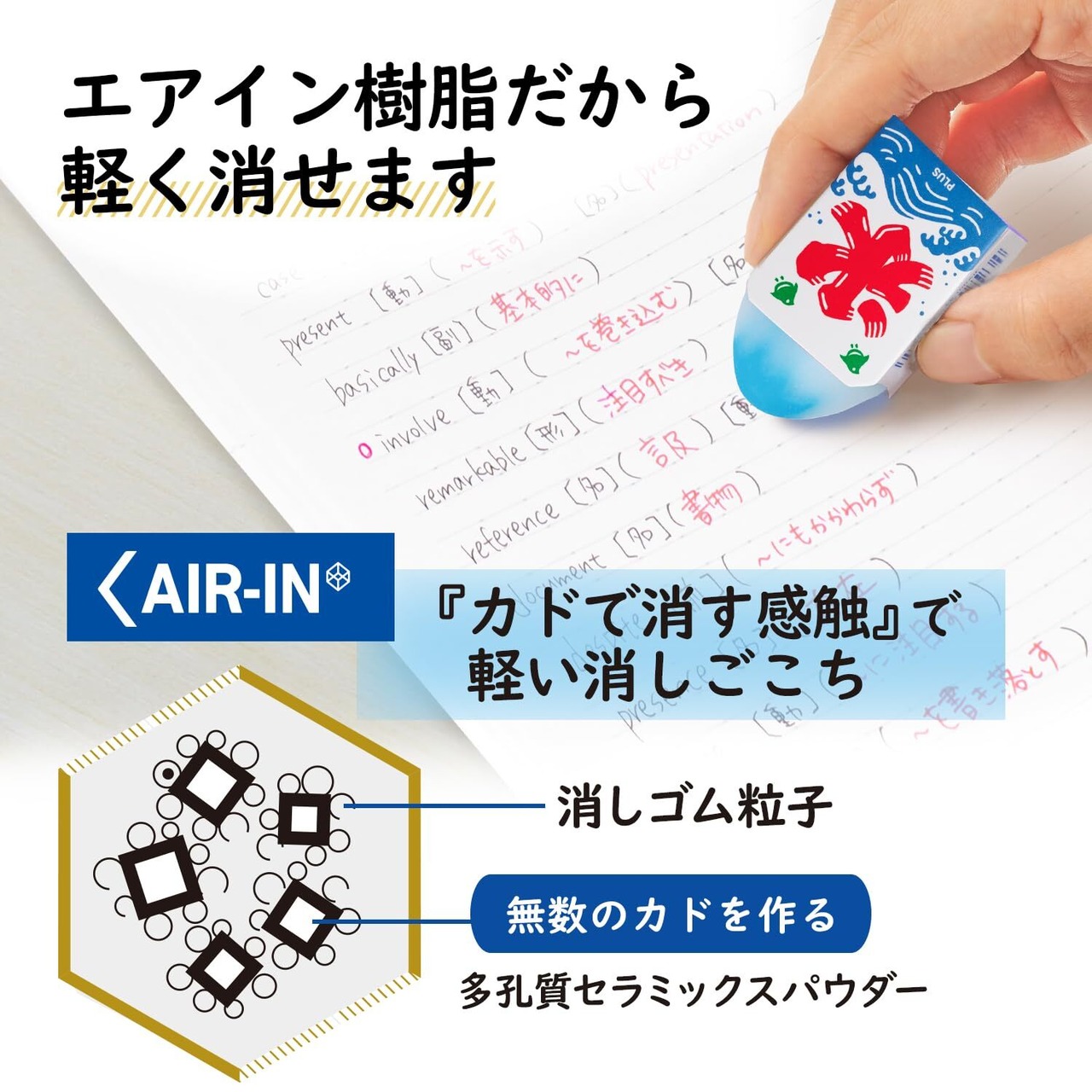 多孔質セラミックスパウダーを練り込んだエアインの成分を使用。消しゴムとしても、軽く、快適な消し心地。