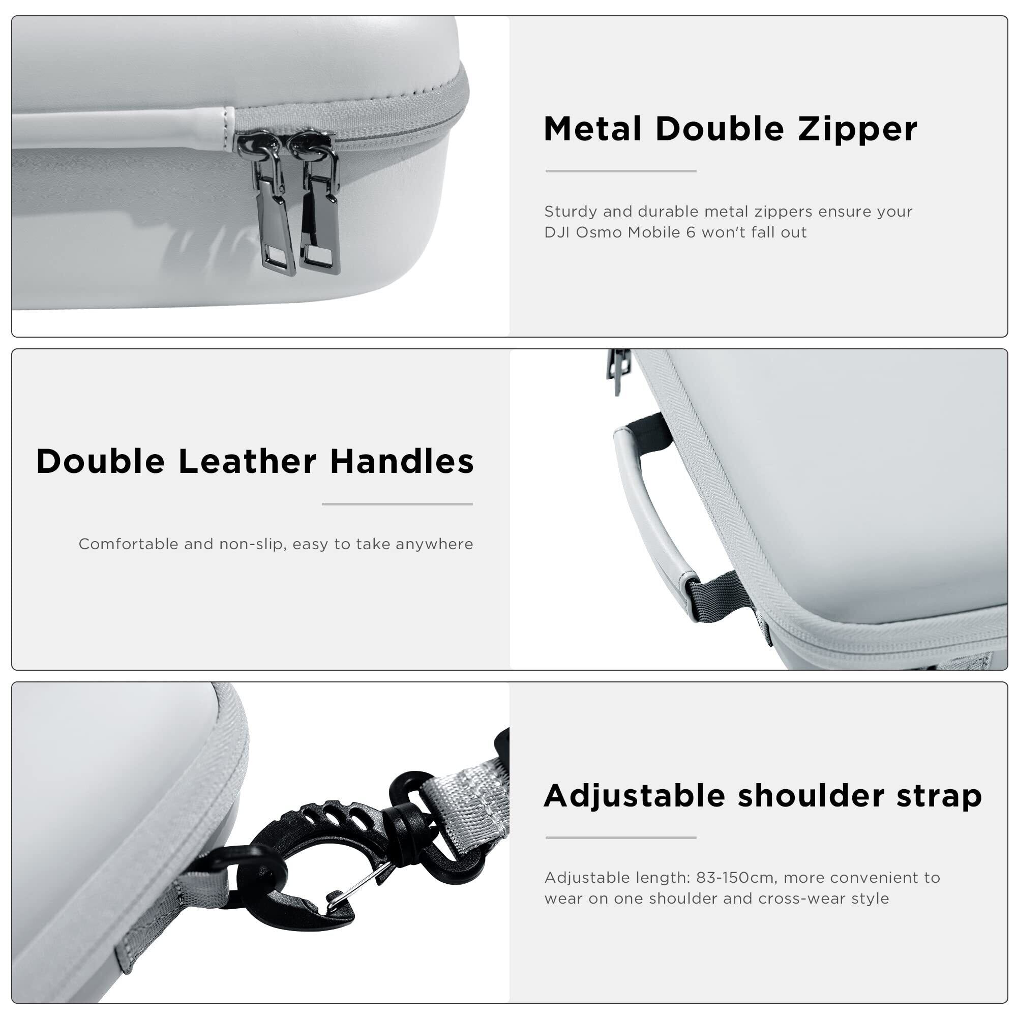 【高品質 Osmo Mobile 6 ケース】om6 ケース ジンバルスタビライザー、マグネット式の携帯電話固定具、グリップ三脚、ハンドストラップ、伸長ポール、自転車のクランプ、データケーブルなど向けに特別にデザインした、収納用バッグ。