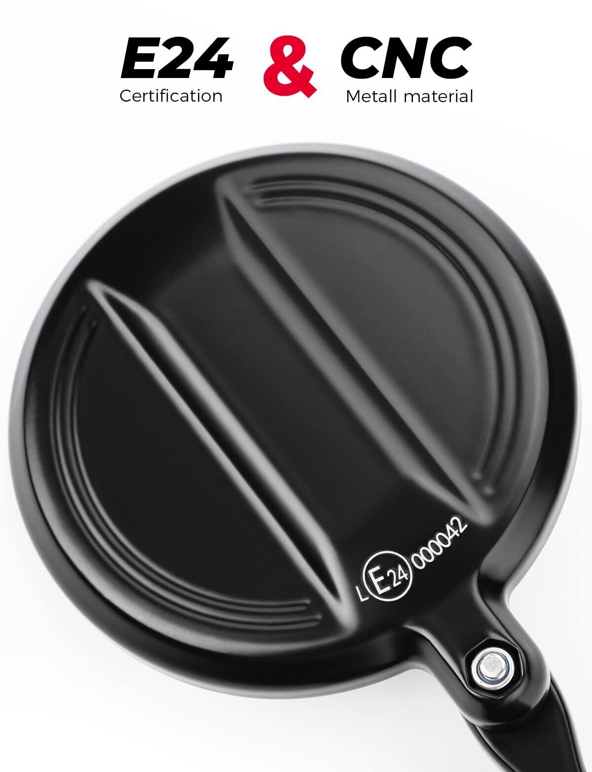 KEMIMOTO バーエンドミラー バイク 左右セット ハンドルバー径13-21mm対応 バイクミラー 丸型 車検対応 CNCアルミ製 可倒式 軽量 オートバイミラー 汎用ミラー 角度調整可能 折りたたみ式 ブラック KM203