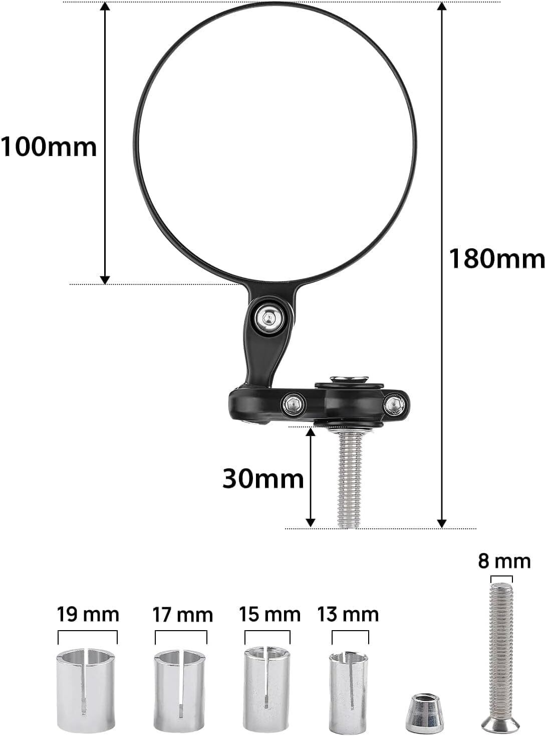 【取り付け簡単】ハンドルクリップに干渉せず取り付けます。 1、六角穴付レンチを使用して、反時計回りに固定されているボルトを緩めます。 2、ハンドルバーに取り付け、ボルトを時計回りに締めます(ラバーカバーを膨らませてハンドルバー内に固定します。 3、必要に応じてミラーの角度を調整します。 (ボルトを緩めてジョイントを固定し、適当な角度を調整して締める)