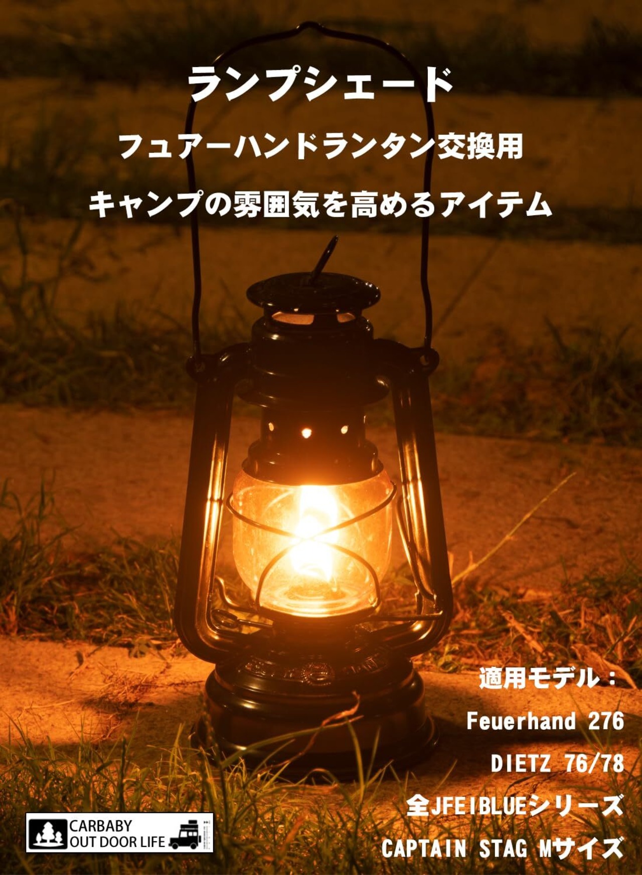 このランプシェードは最初Feuerhand フュアーハンド ランプ用に特別設計されたんですが、他にDIETZ 76/78、全JFEIBLUEシリーズ及びCAPTAIN STAG Mサイズでも適用できます。ランプ本体は含まれていません。
