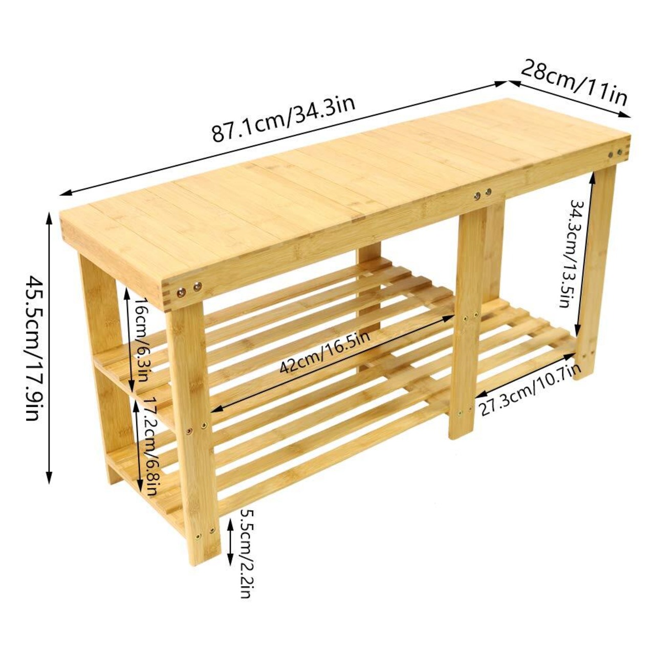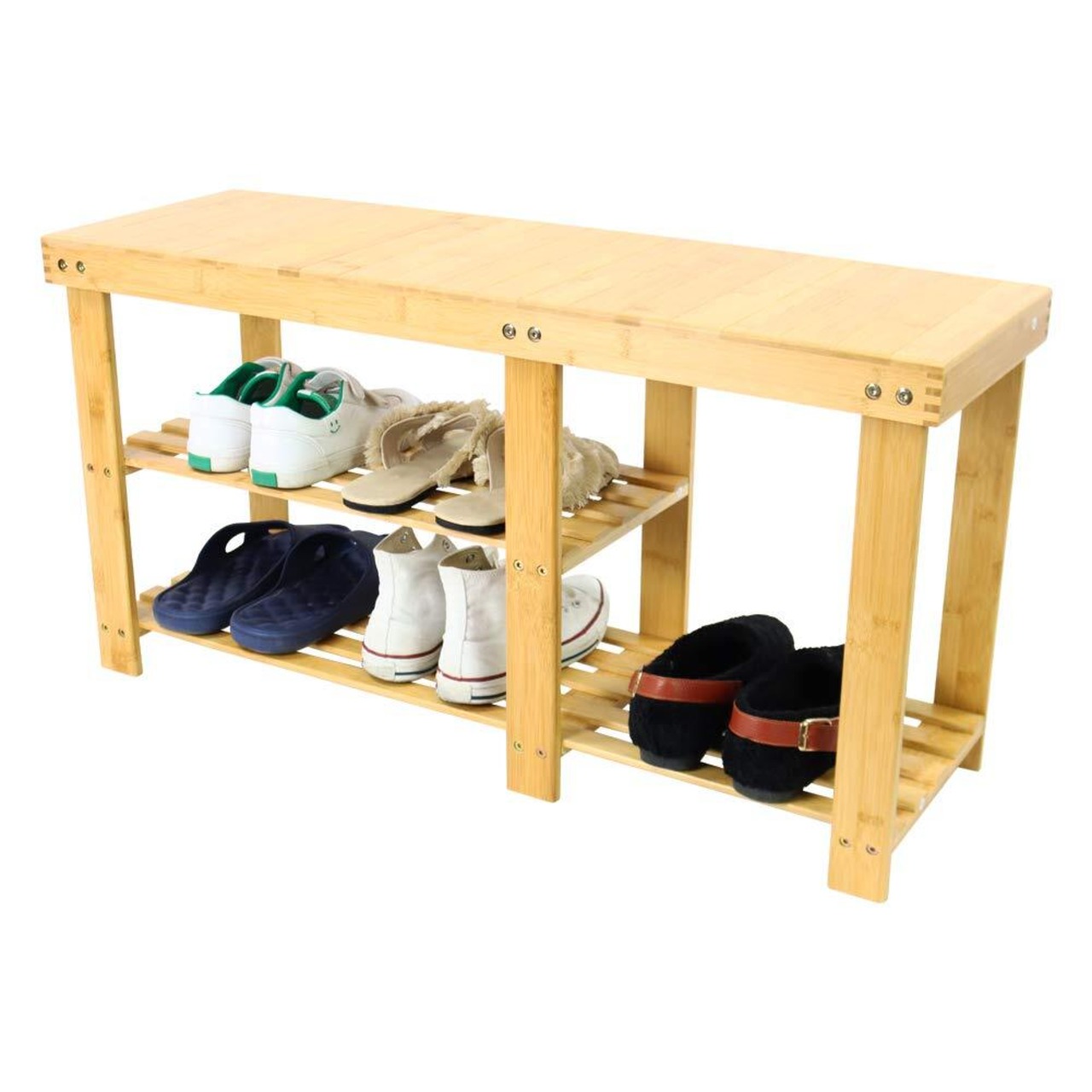 【数量限定】KKTONER 木製シューズラック 玄関ベンチ 収納ベンチ 2段 エントランス廊下ベンチ 靴収納 椅子 フットスツール (自然色)