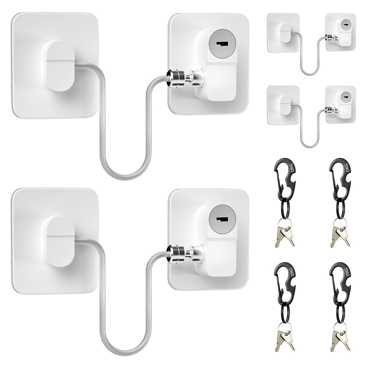 SONGSONG ドア ロック 冷蔵庫 2個パック 鍵4つ 引き出し 窓 室内 鍵 穴あけ不要 ファイル引き出しロック 冷凍庫ドアロック キャビネットロック (まっ白, 4個パック)