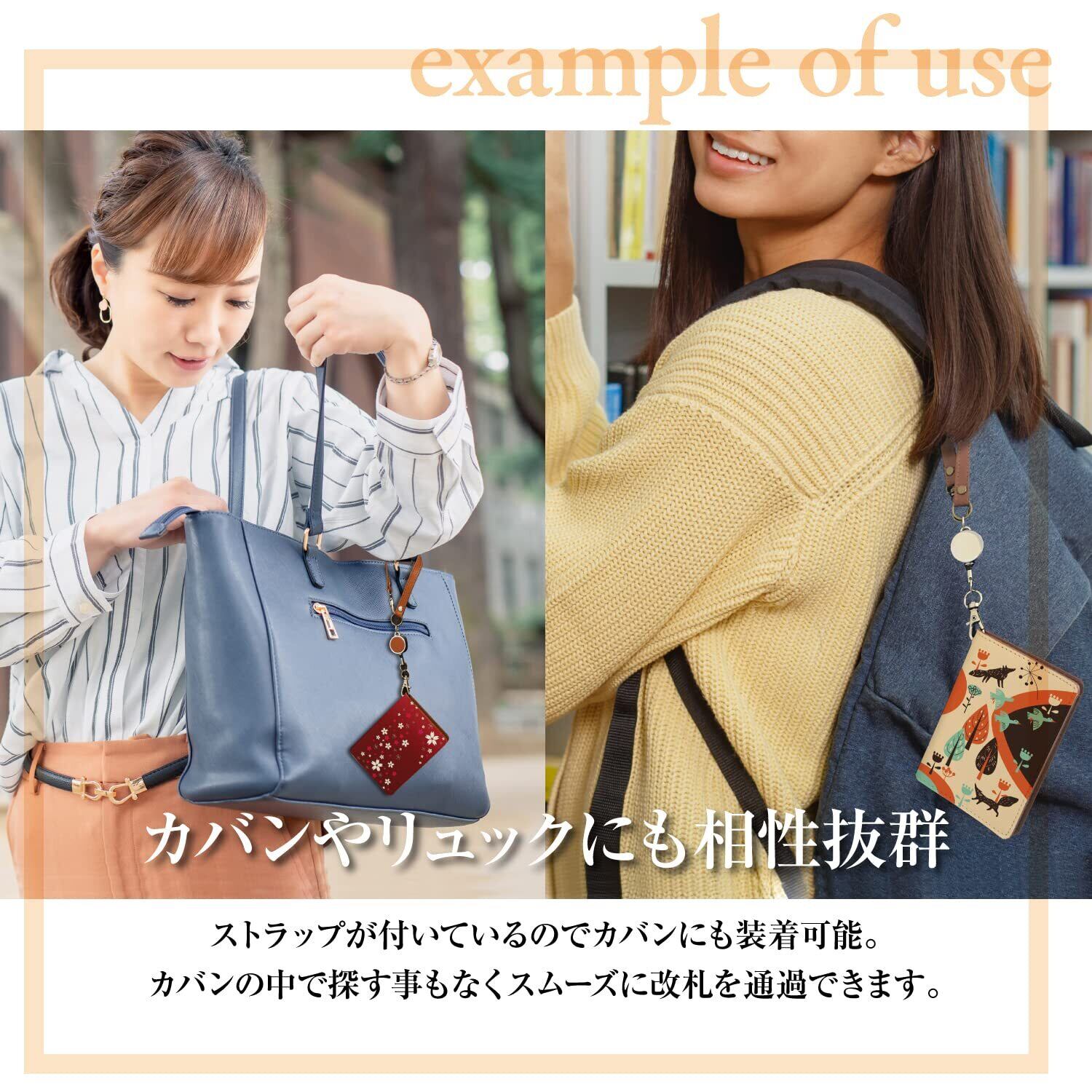 【数量限定】Pretimo 定期入れ icカードケース 二つ折り メンズ レディース 通勤 通学 花 花柄 フラワー 和柄 日本 中がみえない 植物 植物柄 ボタニカル リール付きパスケース オレンジ 桜 秋空/ps