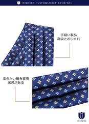 「高密度混紡技術」当社のネクタイは高密度混紡技術を使用しています。1cm²あたり1200本以上の糸を織り込み、ポリエステルとシルクを複雑に混ぜ合わせて生地を作り出しています。ポリエステルのしわになりにくさの特徴を兼ね備え、シルクの光沢もあり、角度によって異なる色を表現することで高級感を出しています。手触りや質感、耐久性も優れています。