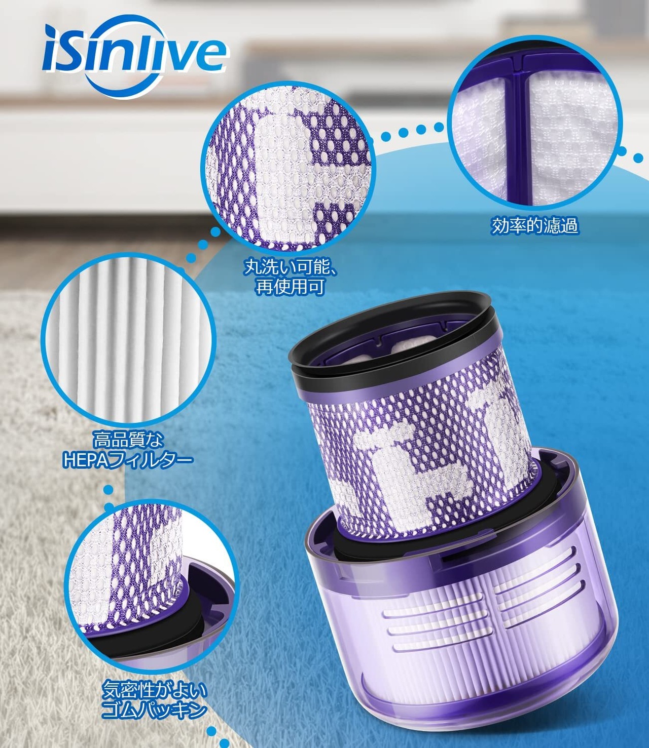 ダイソン V10 SV18 デジタルスリム 交換用 フィルター 掃除機 Digital Slim SV18 FF PRO / SV18 FF COM / SV18 FF / SV18 FF ENT / SV18 FF ENT2 / SV18 FF EX / SV18 FF ENT EX / SV18 FF COM2 互換フィルター コードレス掃除機 フィルター 交換品 洗濯可能 (3個入り)