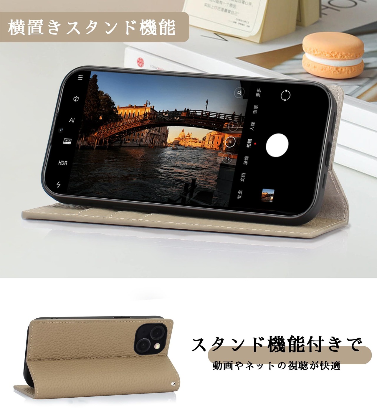 【性能抜群】横置きスタンド機能が付いて、好きな角度で動画鑑賞や読書などを楽しめます。内側には三つのカード入れとフリーポケットが付き、名刺や定期券の収納に優れています。そして、簡単に開け閉めができるから、片手で開きたい方にもとても便利です。