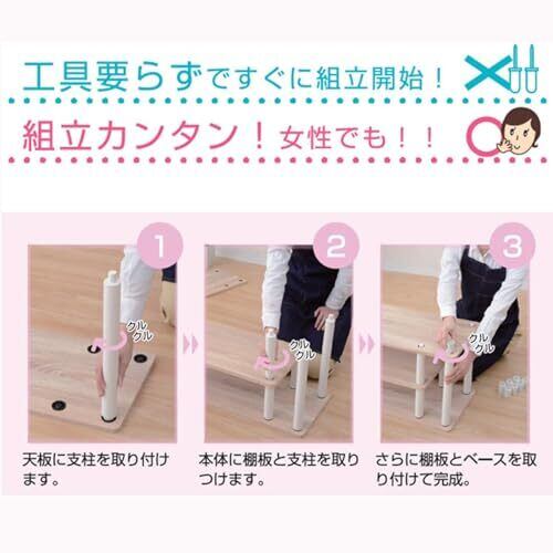 ■本体サイズ(約):幅111.5×奥行29.5×高さ41.5cm■中段棚板外寸(約):幅60.5×奥行29.5cm■中段棚板内寸(約):幅49×奥行18.5×高さ16.5cm■下段外ポール~内ポール内寸(約):22cm■下段奥行内寸(約):18.5cm■耐荷重(約):天板/20kg、中棚/10kg、下棚/20kg■材質:棚板/プリント紙化粧パーティクルボード、支柱/ポリエチレン・ポリピロピレン