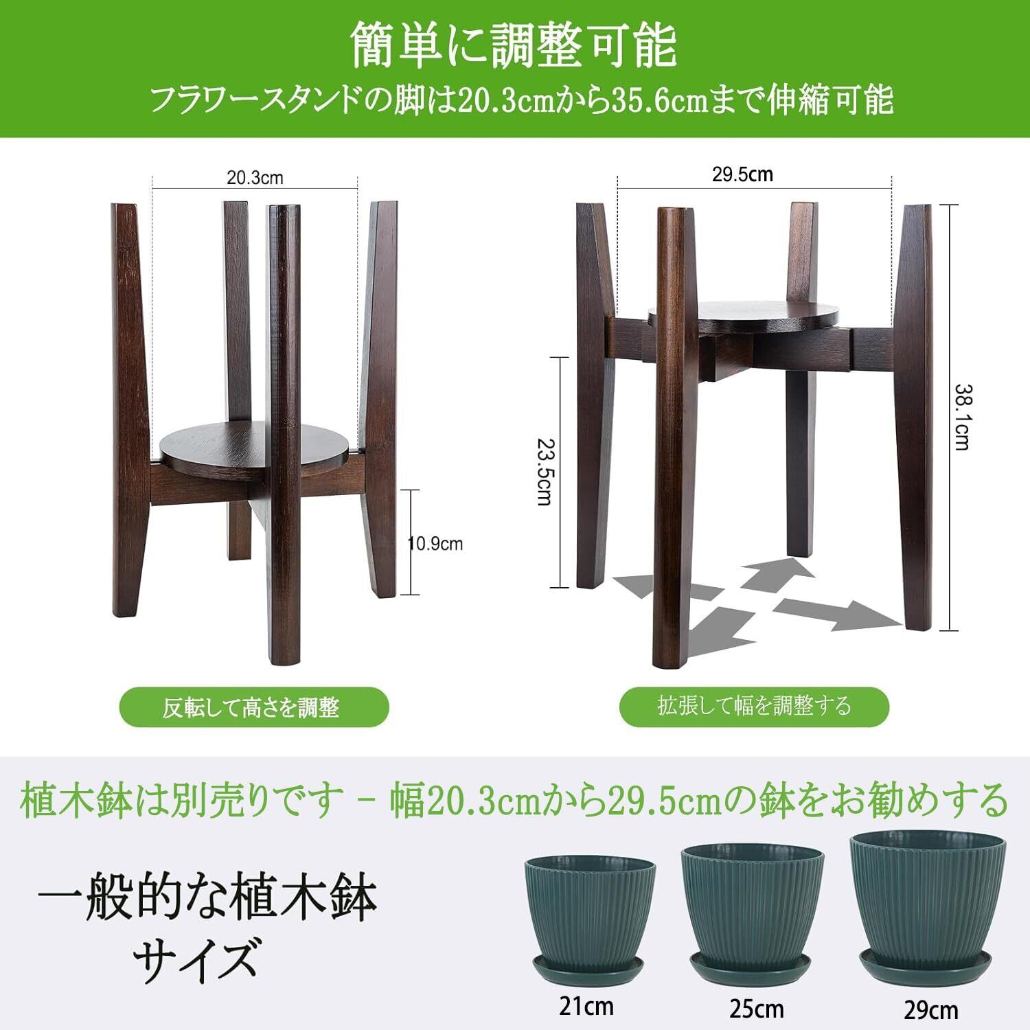 フラワースタンド 鉢スタンド トレイ付き 幅30cmまで調整 て 竹製 ジャグスタンド 花台 植木台 真ん中世紀 花ポットホルダ(ダークブラウン)