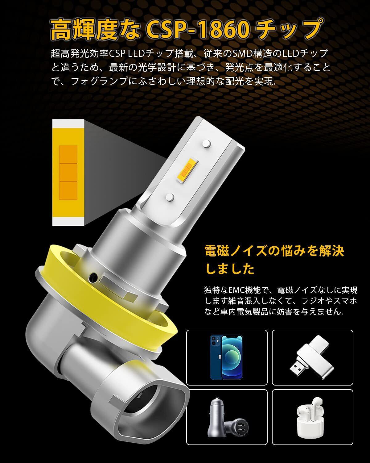 GOSMY LED フォグランプ H8 H11 H16 バルブ イエローフォグ黄色 12V車対応 2000LM CSPチップ搭載 3000K 50000時間以上寿命 (2個入り)