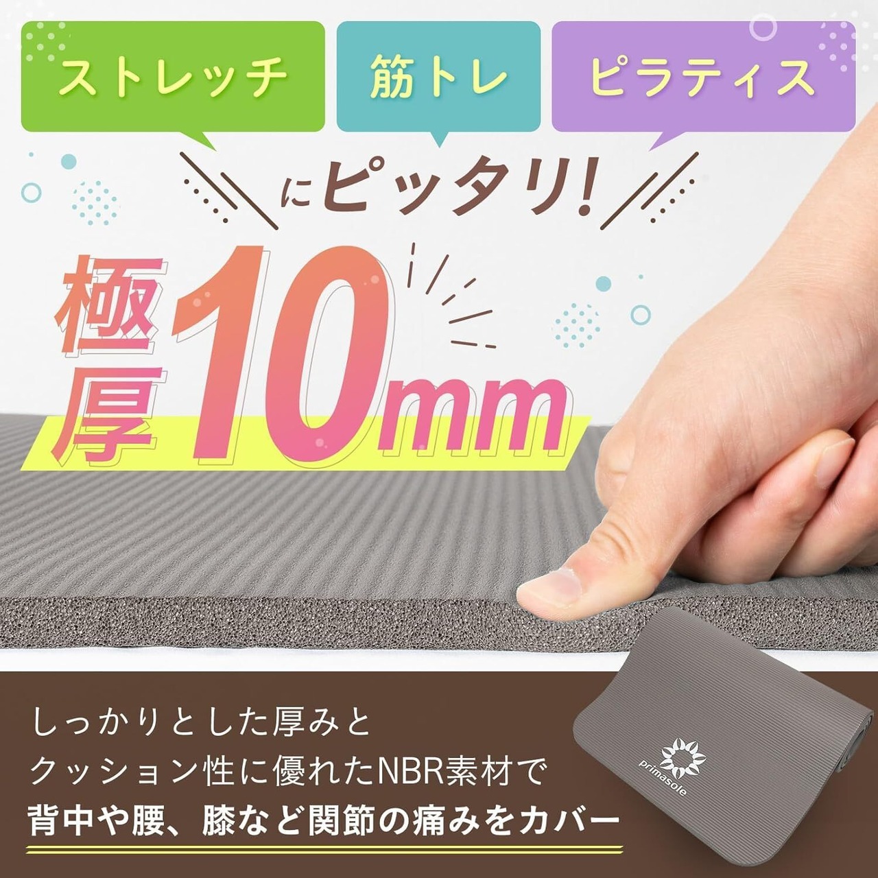 プリマソーレのNBRヨガマット、独自の製法でもちもちフワフワの感触を実現しました!