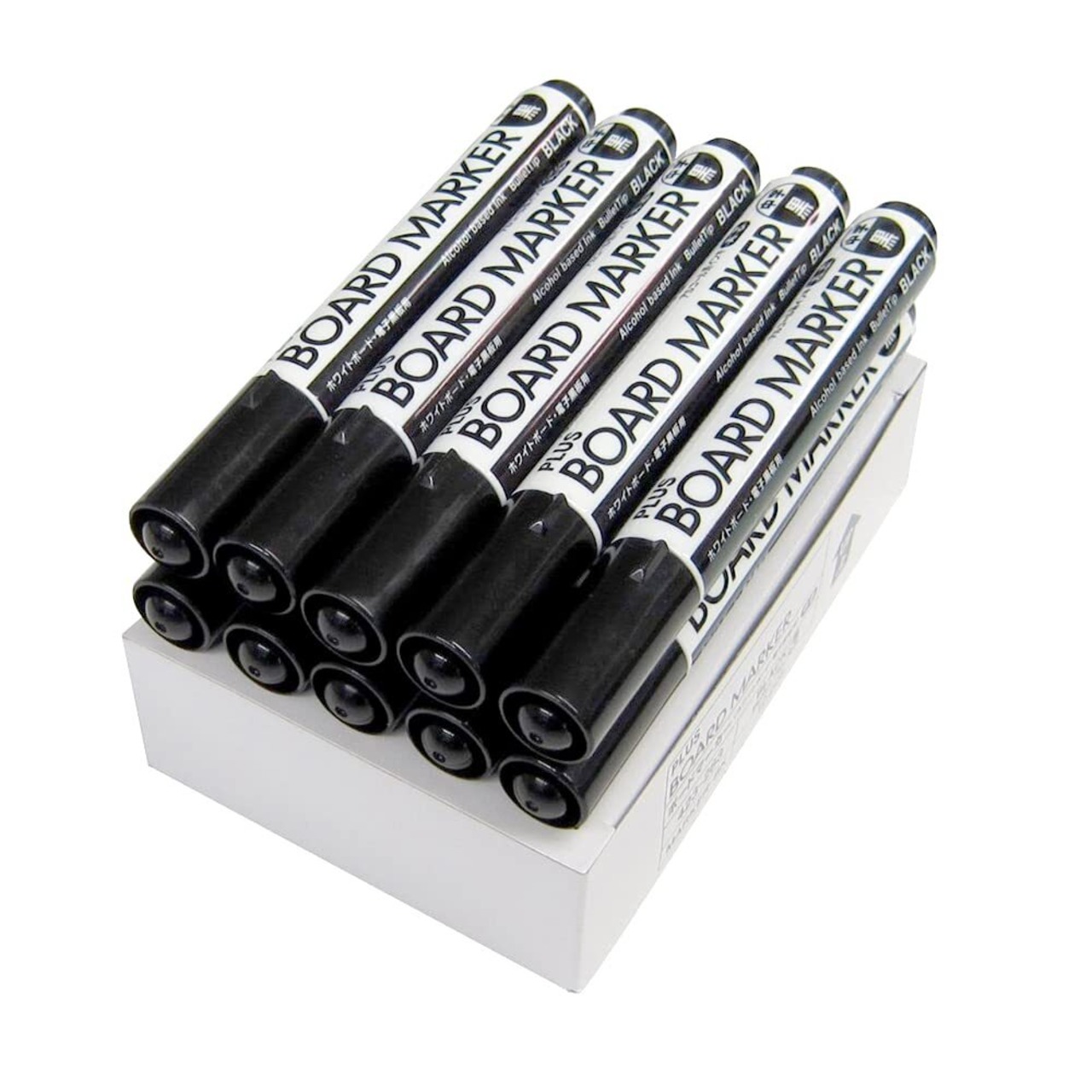 PLUS(プラス) プラス ホワイトボードマーカー 黒 中字 丸芯 ブラック 10本入 423-283 ×10