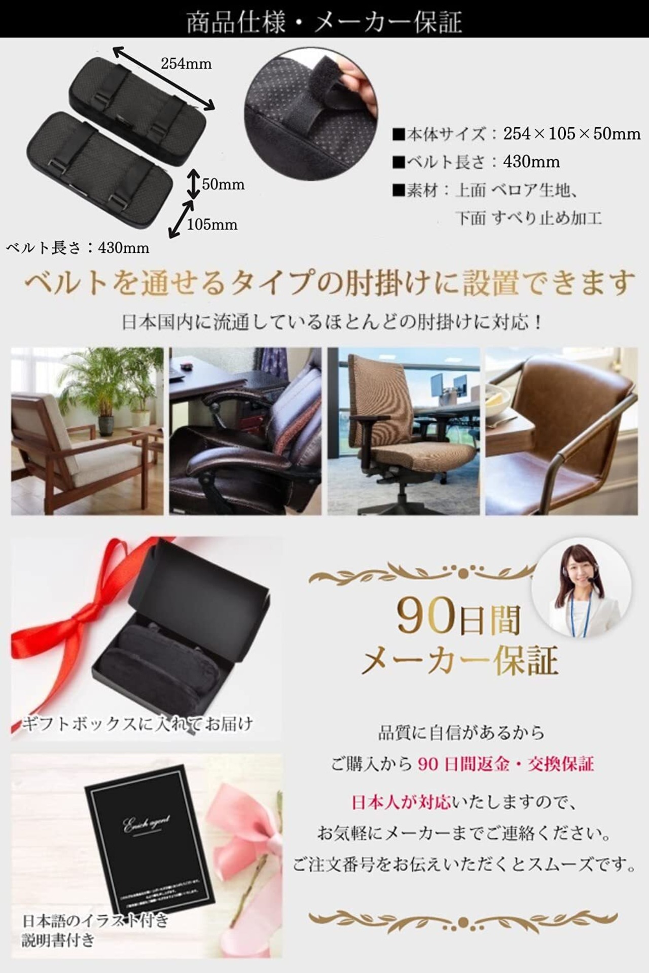 【ビジネス大賞】Enich agent ひじ置きクッション 両肘セット 低反発 ひじかけ アームレスト 椅子 日本語説明書付 ブラック (ブラック L:254×105×50mm)