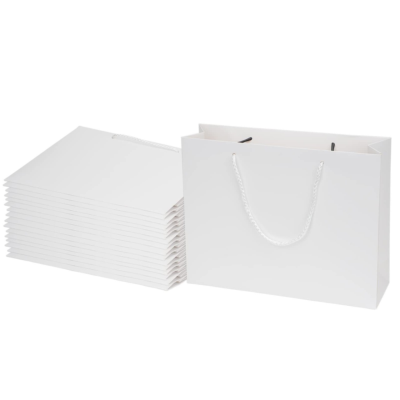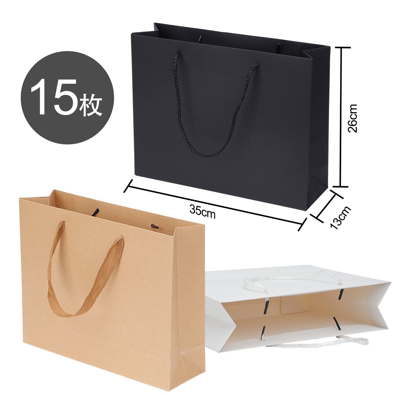 TOPtoper 紙袋 手提げ袋 ギフトバッグ 厚手タイプ 【15枚】セット 丈夫で耐久性があり 再利用可能 クラフトバッグ ギフト 袋 DIY 結婚式 包装 パーティー 誕生日 クリスマス用ギフトバッグ ((横型35*13*26) ホワイト)
