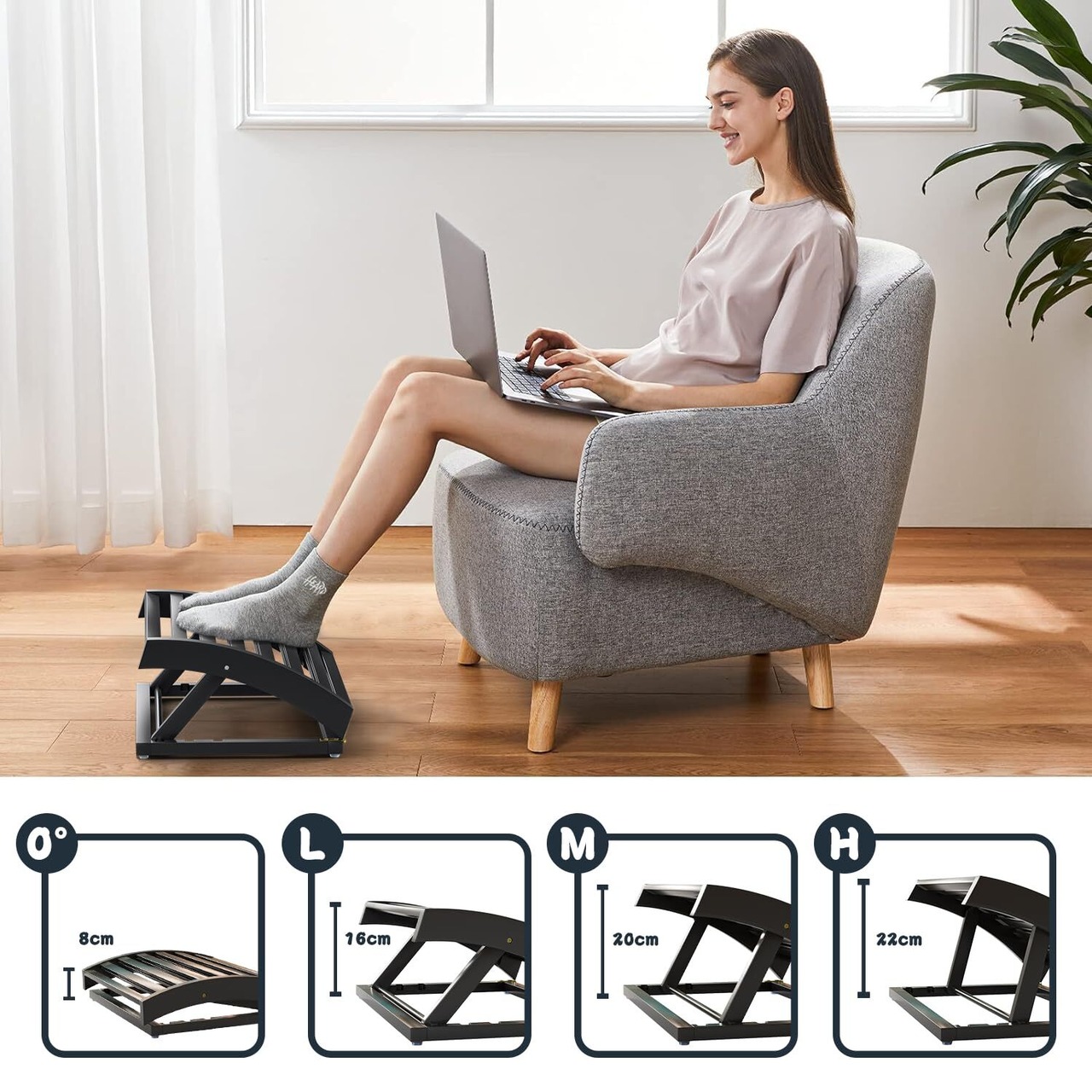 Focieulo フットレスト デスク下 高さ調整 オットマン 足置き台 折り畳み 三段階角度調節 机の下 足台 取扱簡単 テレワーク用 自宅 オフィス 竹製 ブラック