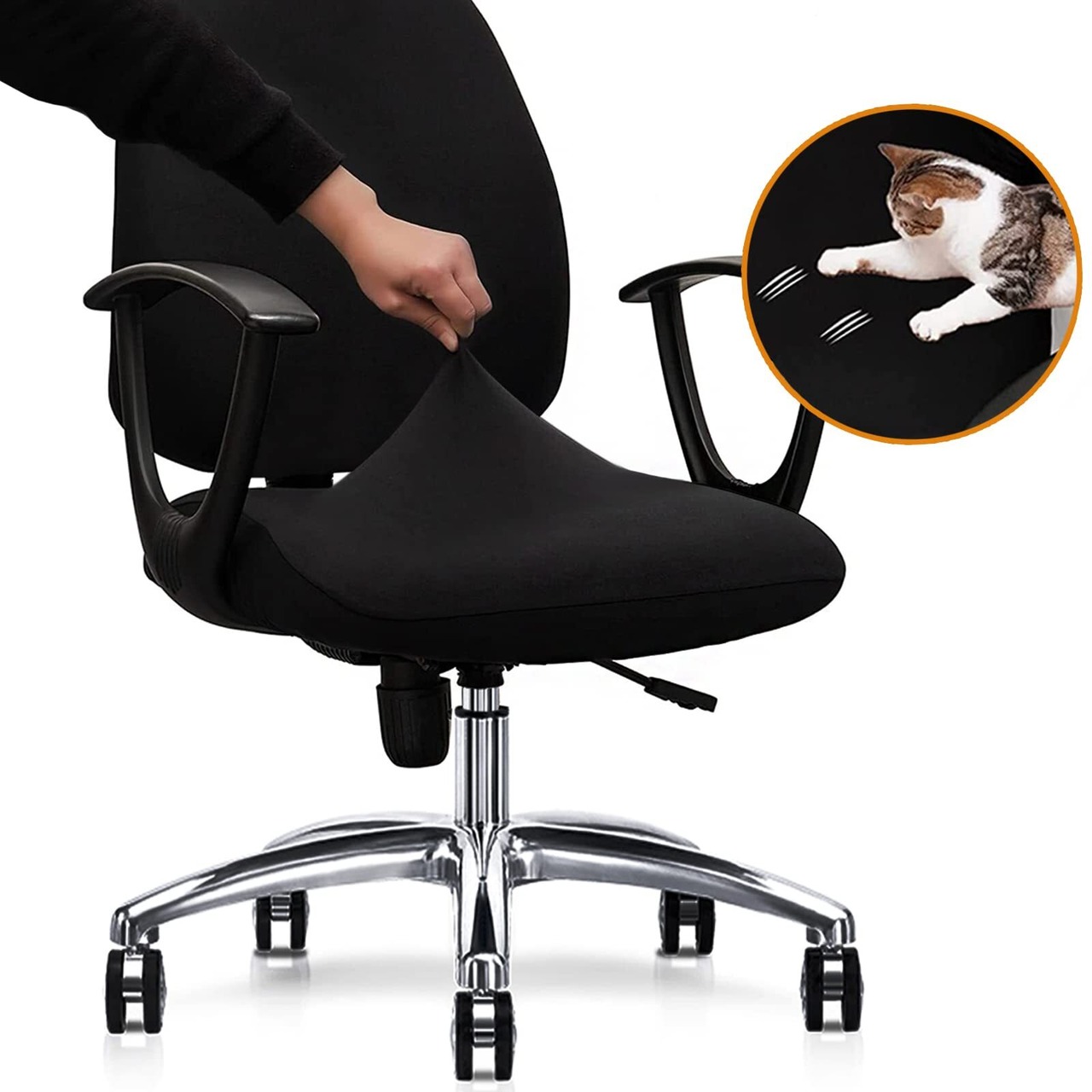 チェアカバー オフィス椅子カバー 事務椅子 伸縮素材 洗濯可能 取り外し可能 座面部分と背もたれ オフィスチェア カバー 背もたれ (ブラック)