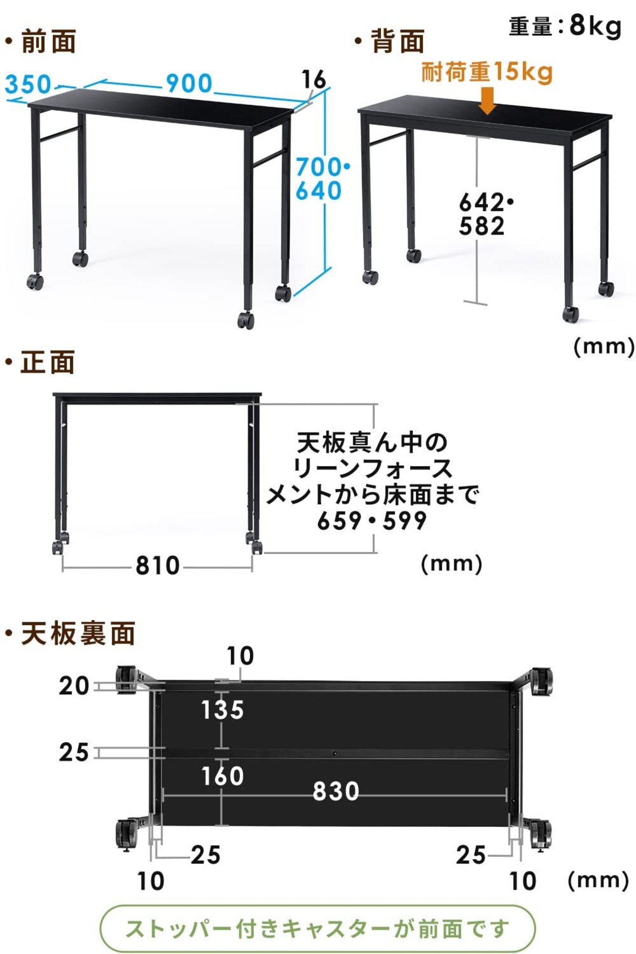 天板の高さを64cmにすれば、使わないときはデスクの下に収納したり、キーボード台として使用可能です。