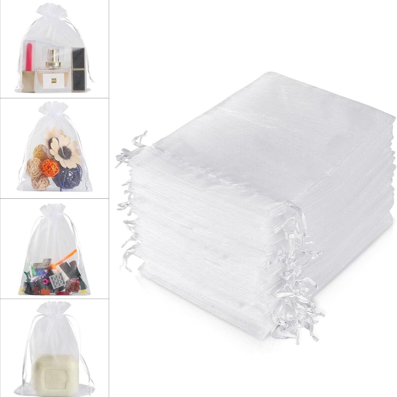 【高品質材質】良質な透明欧根糸から作られ、外側と両側の縫い目が非常によく縫製されている。リボンは滑らかにスライドして袋を閉じ、安全に閉じられるようにすることができます。丈夫で長持ちする。