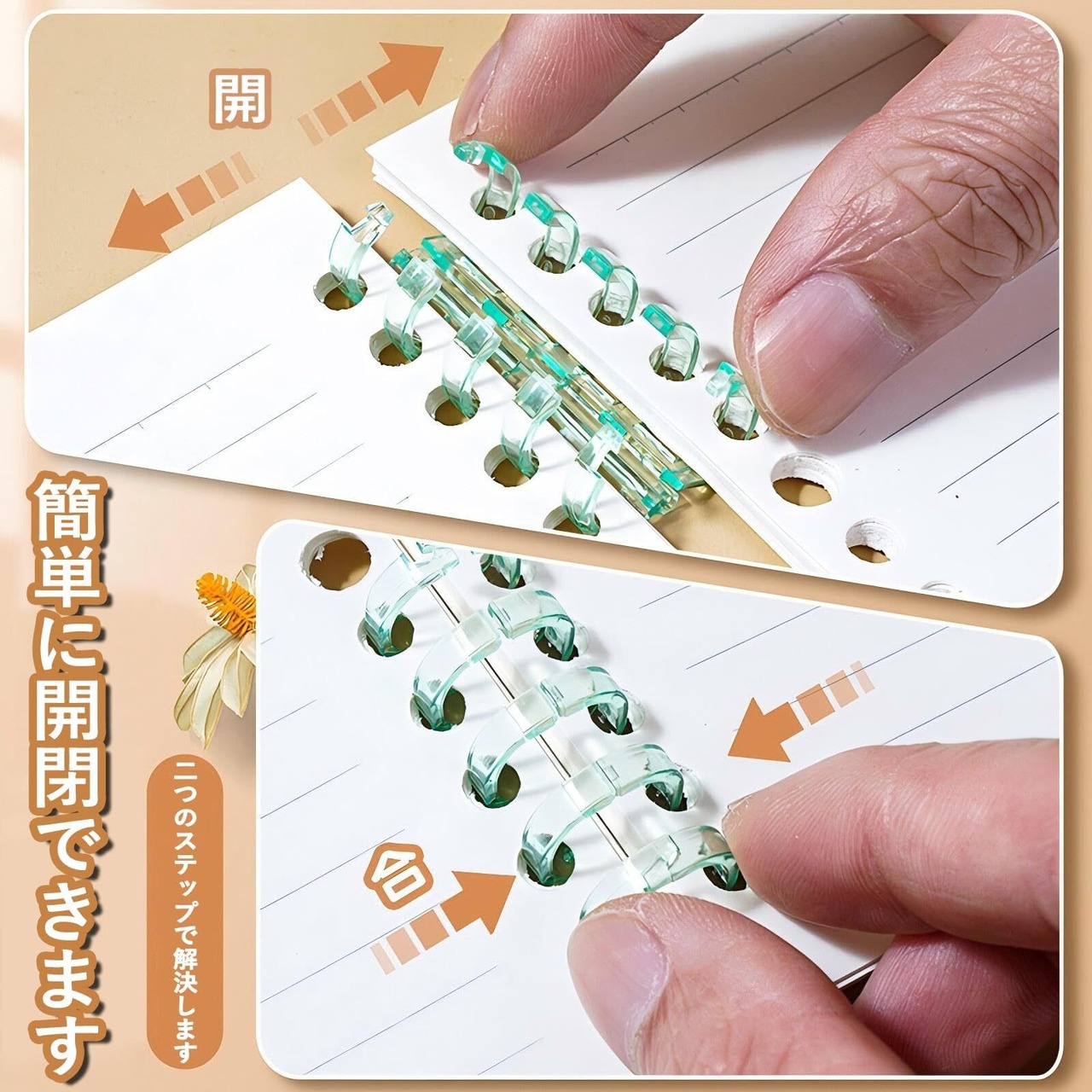 幅広い応用大容量ルーズリーフバインダー!DIY手帳から書類まで、幅広く使えます。単語帳、学習カード、カレンダー、旅行日記…整理したい物があれば、これ一本でOK。教師や学生の方にもぴったりで、毎日の豊かな生活をサポートするバインダーリングセットです。
