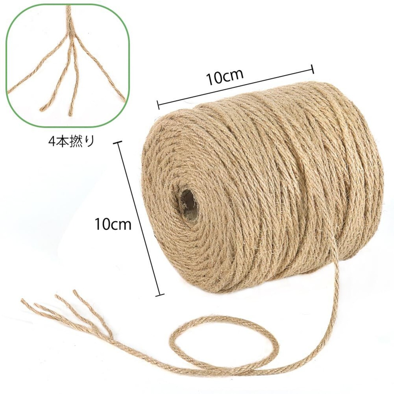 【耐用&実用】この麻紐は優れた耐久性と引張強度を持ち、室外や室内のさまざまな用途に適しています。素材は天然麻なので少し毛羽立つのに、手触りがほぼ柔らかくて梱包されるものが損傷を受けません