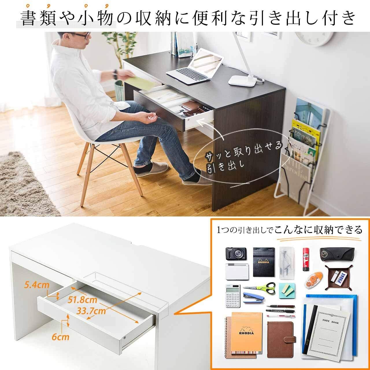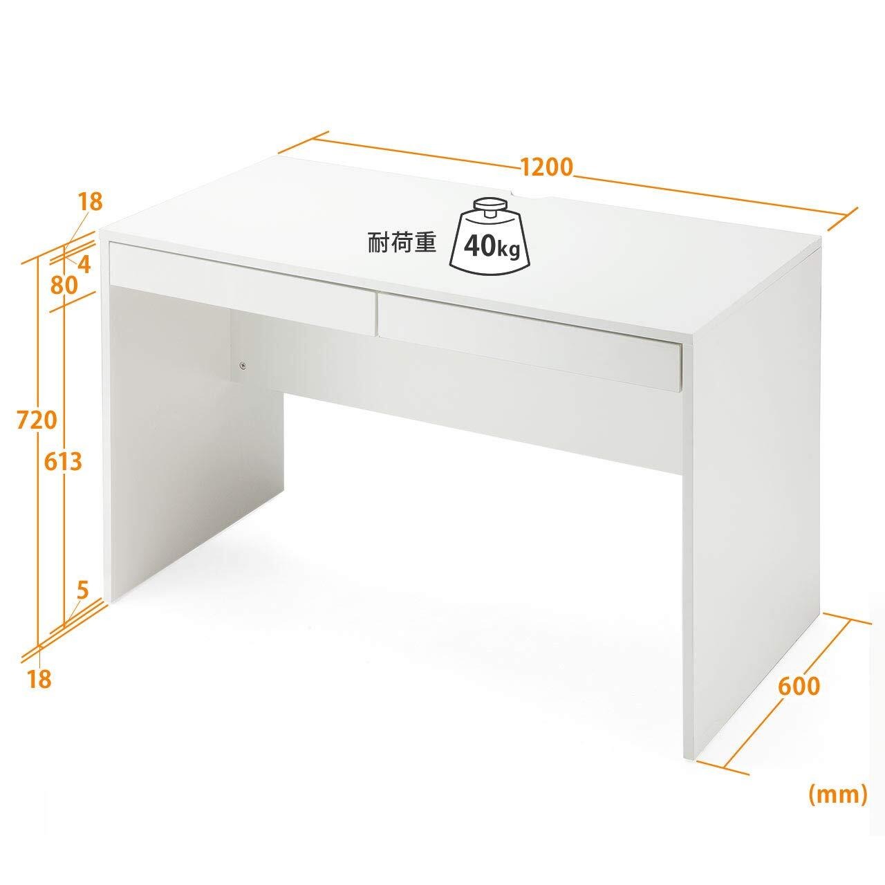 サンワダイレクト パソコンデスク 木製 幅120×奥行60cm 引き出し付き 耐荷重40kg モニターアーム対応 ホワイト 100-DESKH010W