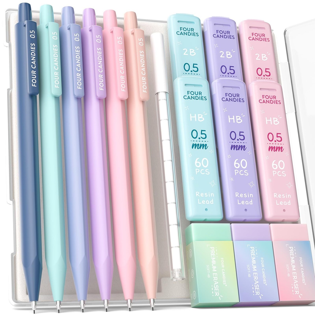 Four Candies パステルシャープペンシル 6本 セット 0.5mm HB&2B シャーペン 書きやすい 中学生 360本シャー芯 消しゴム付き かわいい シンプル 女の子 男の子 学生 文房具セット