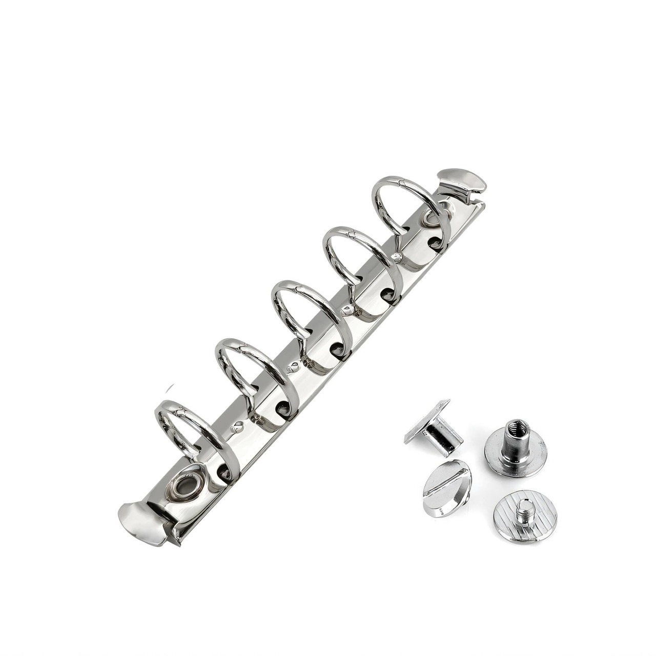M5 多穴式リング バインダー金具 背なしタイプ 5穴【M5-5-15/15】15mm×130mm リング内径15mm 鉄ニッケル鍍金 シルバーシカゴスクリュ付き 手帳 製本 (M5-5穴)