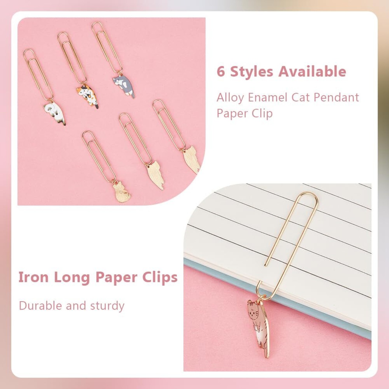 ユニークなデザイン:ペーパークリップは猫の形にデザインされ、甘く愛らしいスタイルの美しさを表現しています。絶妙な職人技が仕上げのアクセントになっています。
