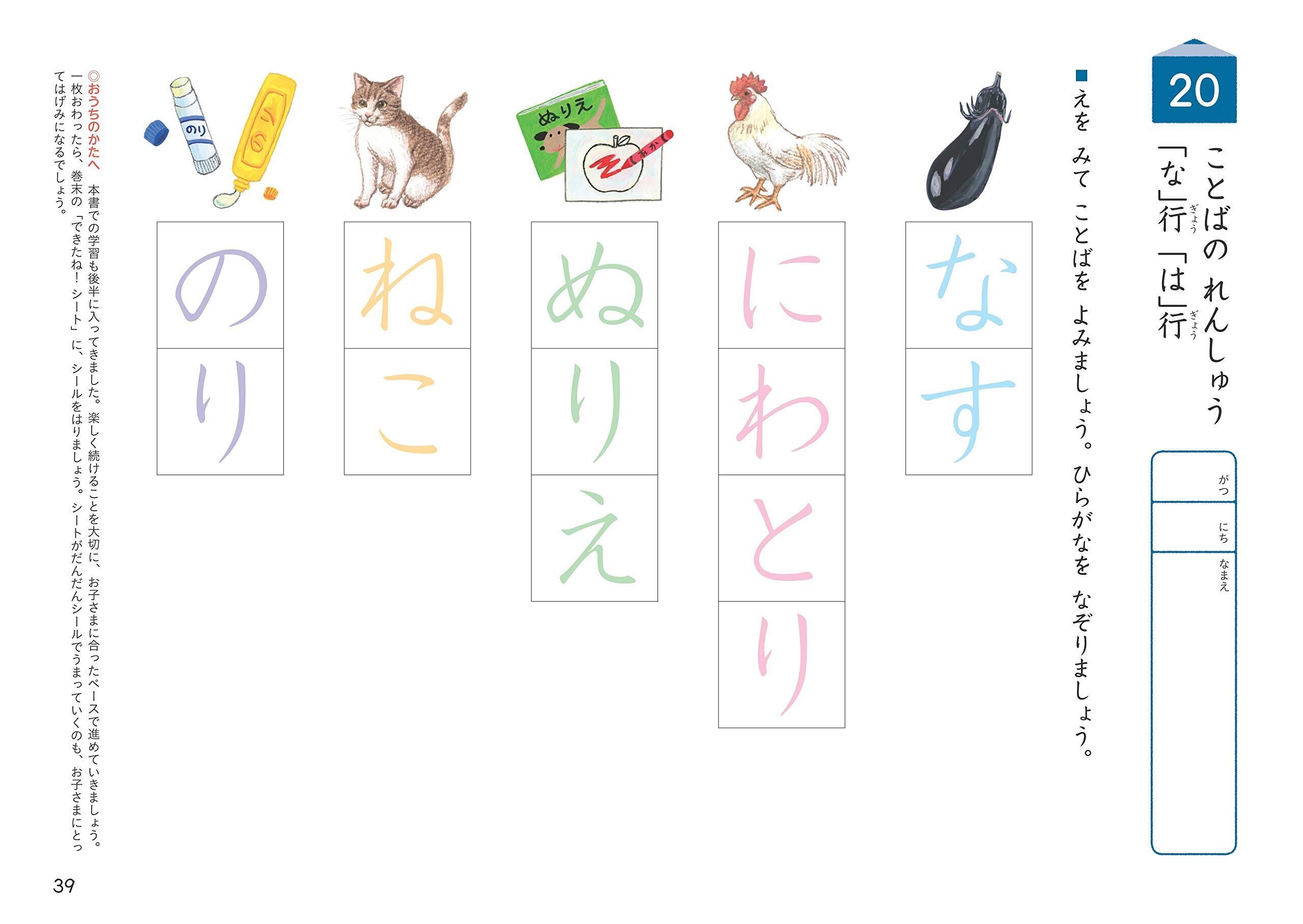 五十音の順に、濁音、半濁音をふくむすべてのひらがなを練習