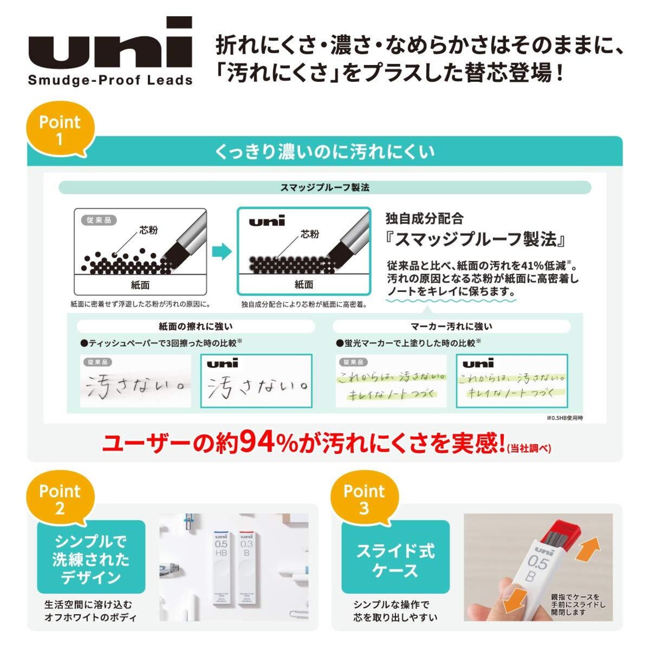 シャープ替芯 シャー芯 濃い なめらか 汚れにくい 擦れ 折れにくい マーカー汚れ スライド式 書きやすい 綺麗な字 美文字 スマッジプルーフ製法