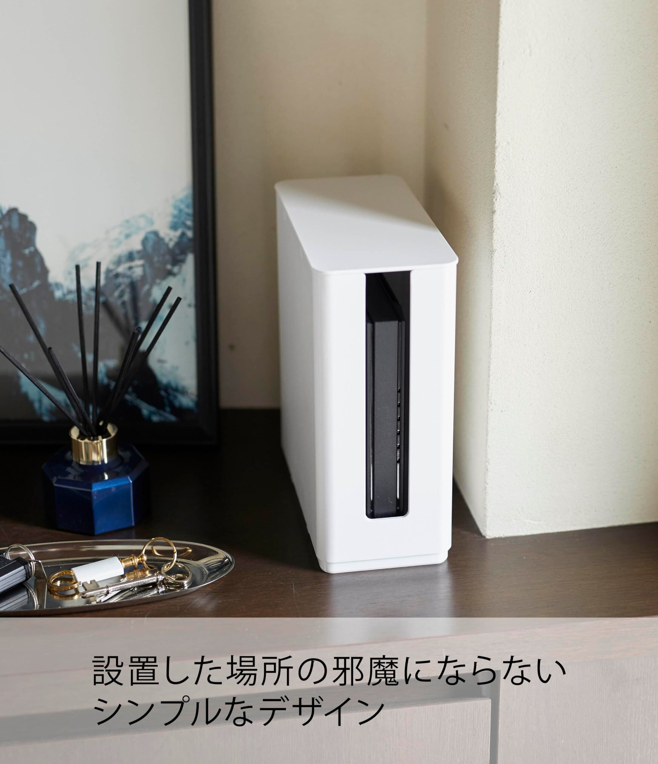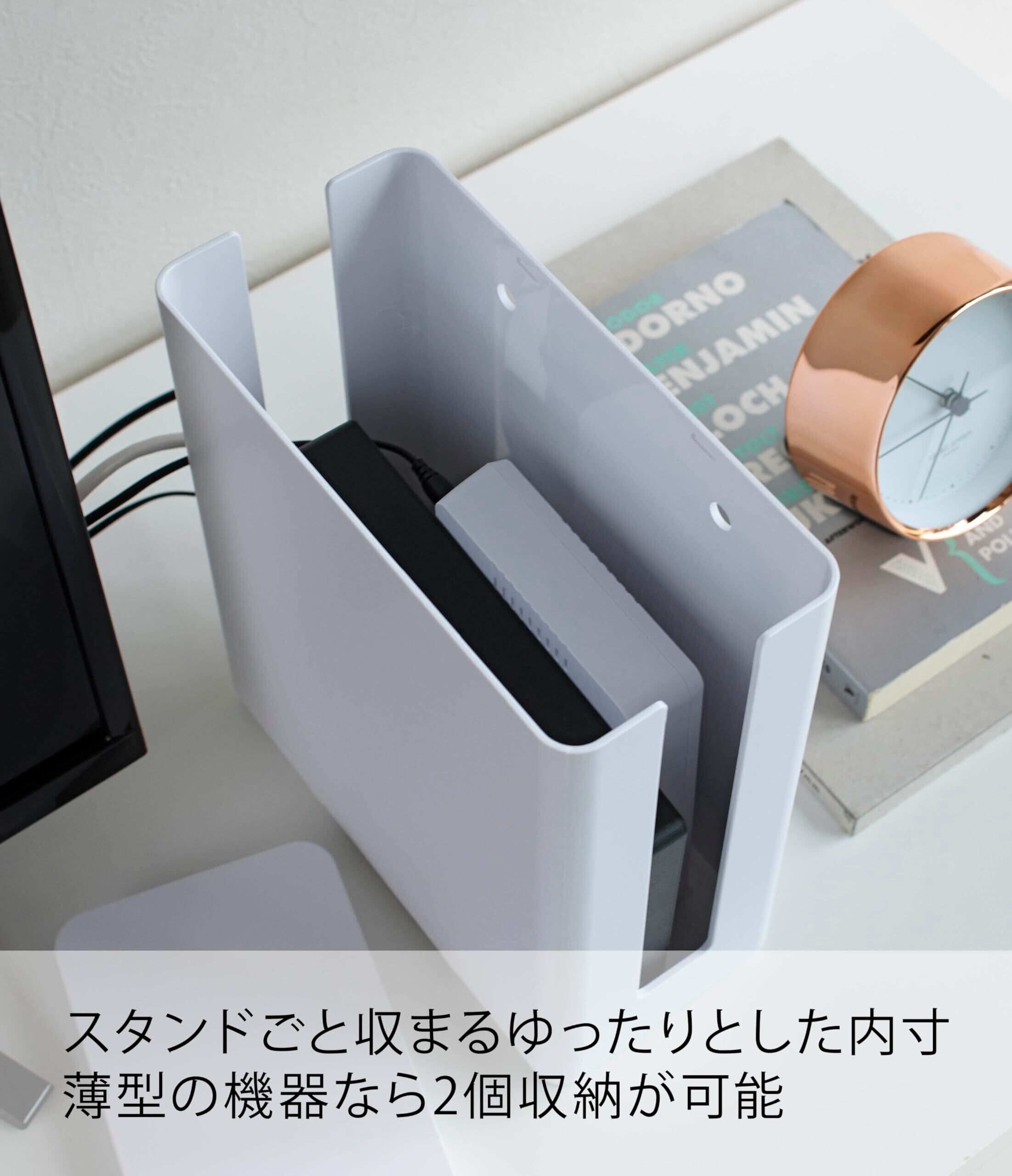 山崎実業(Yamazaki) 重ねられる スリム 蓋付き ルーター収納 ケース ホワイト 約W9.7XD20.2XH22.2cm スマート テレビ裏収納 スタッキング可 4913
