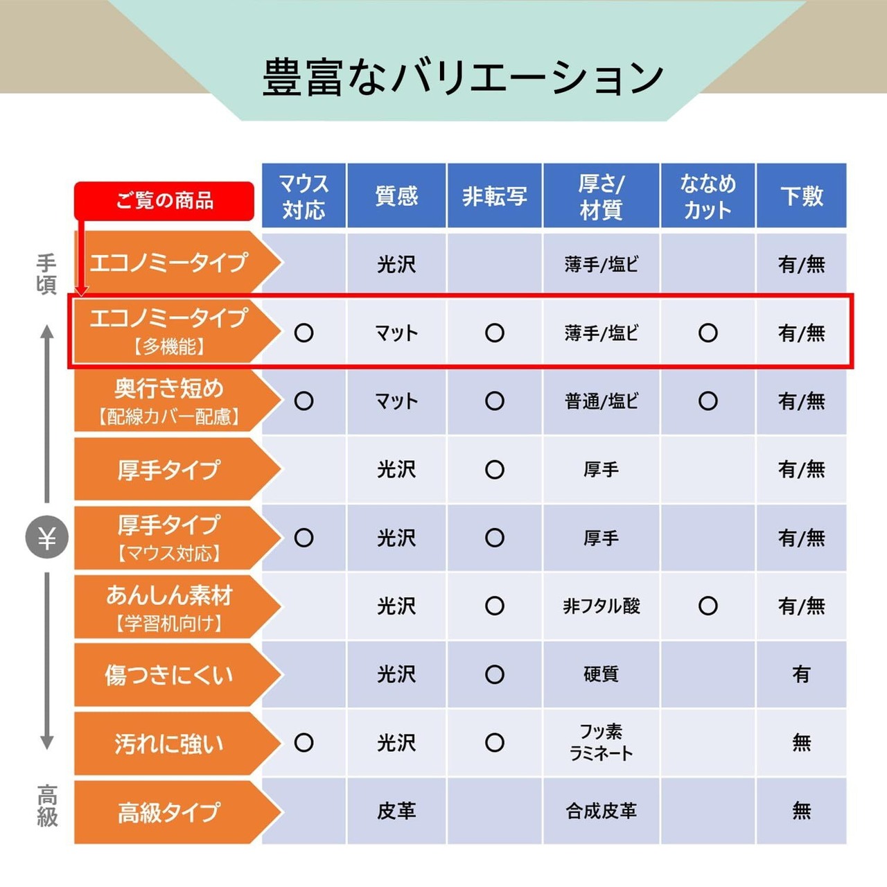 ななめカット デスクマット(再生塩ビ)OAタイプエコノミー シングルタイプ(下敷なし)