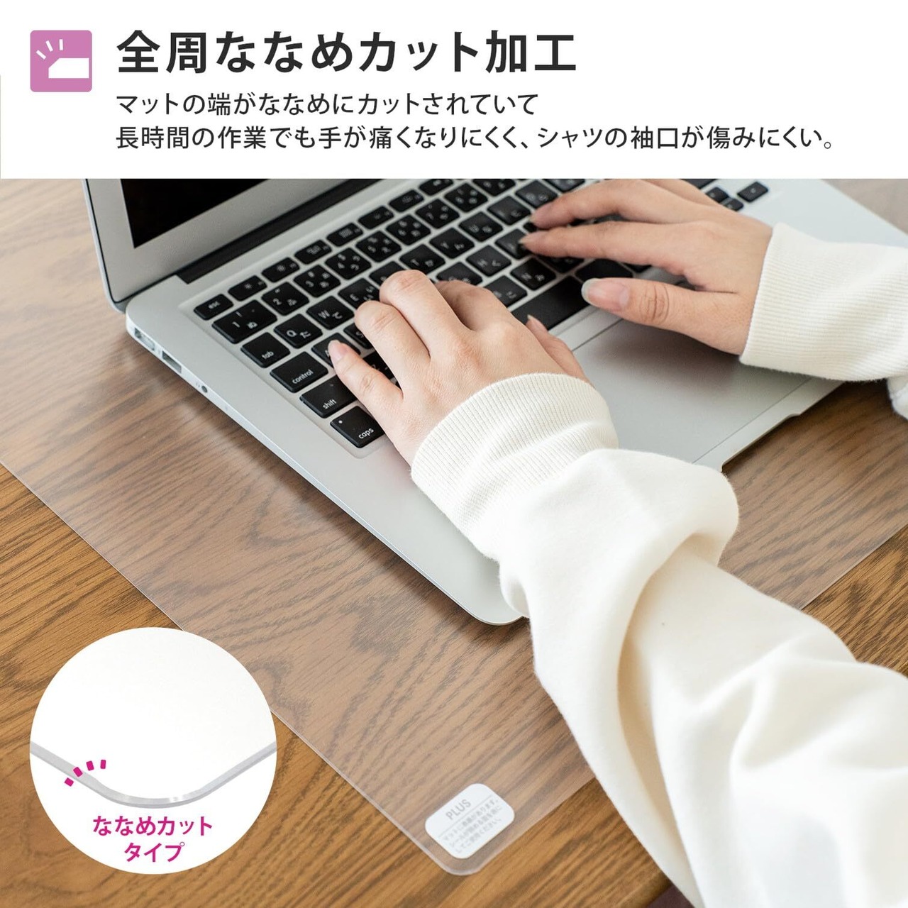 プラス デスクマット 透明 マウス対応 両面転写軽減 1045×715mm 斜めカット 41-050