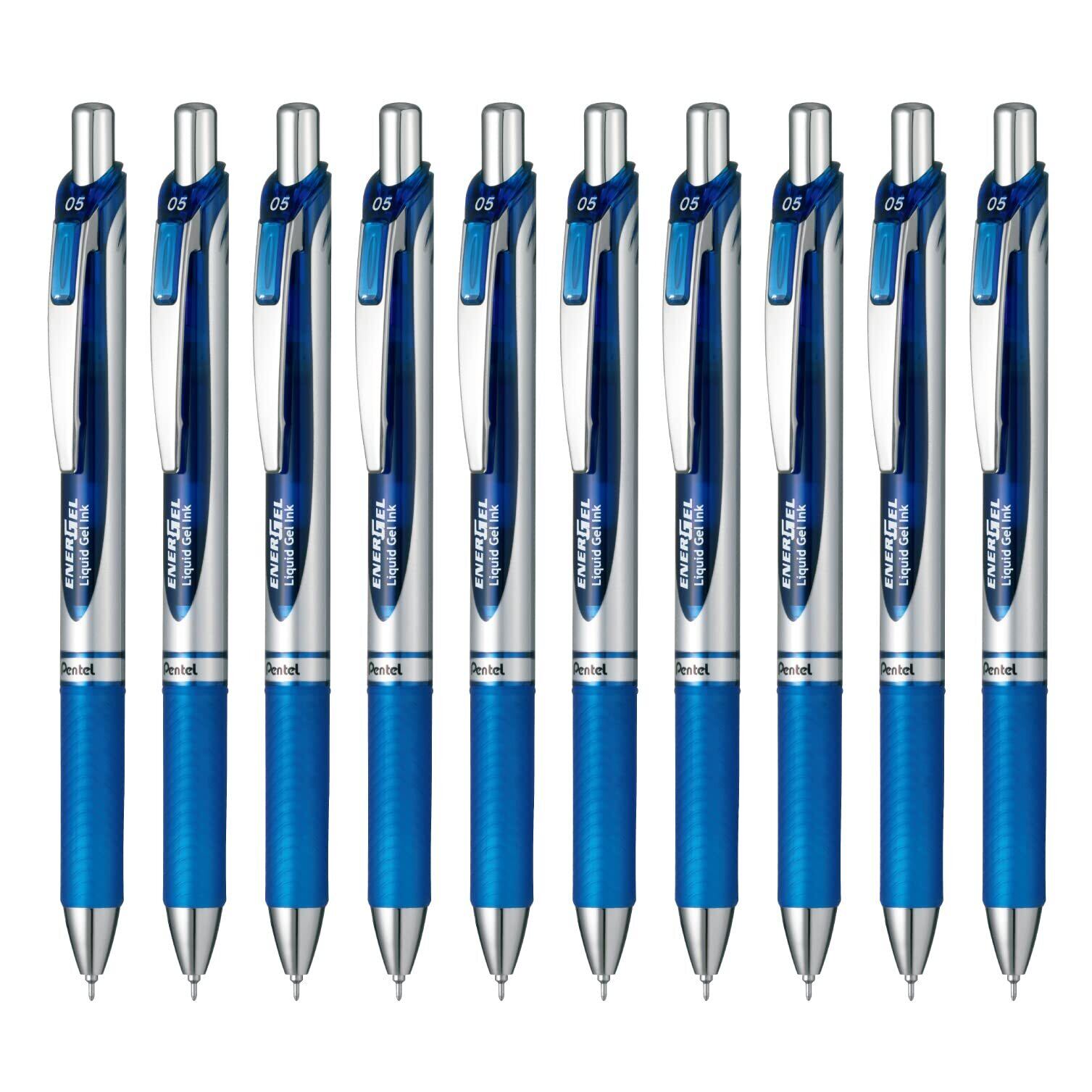 ぺんてる ボールペン ゲルインキ エナージェル ノック式 0.5mm シルバー軸 BLN75Z-C 青 10本