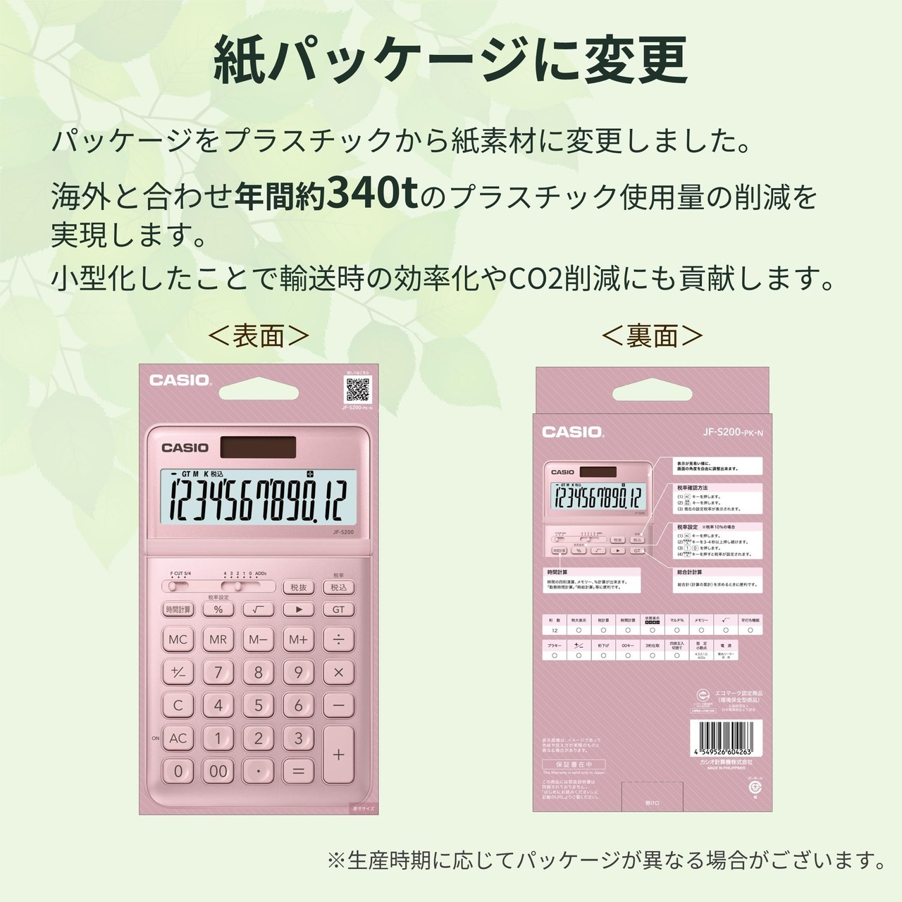 カシオ スタイリッシュ電卓 ライトピンク 12桁 ジャストタイプ JF-S200-PK-N
