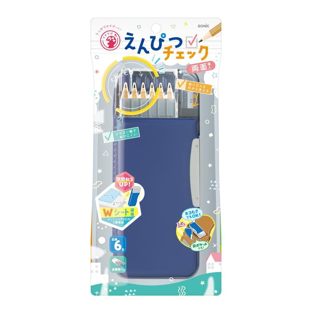 ソニック えんぴつチェック両面筆入 Wシート補強 うかサポ ネイビー FD-8445-K