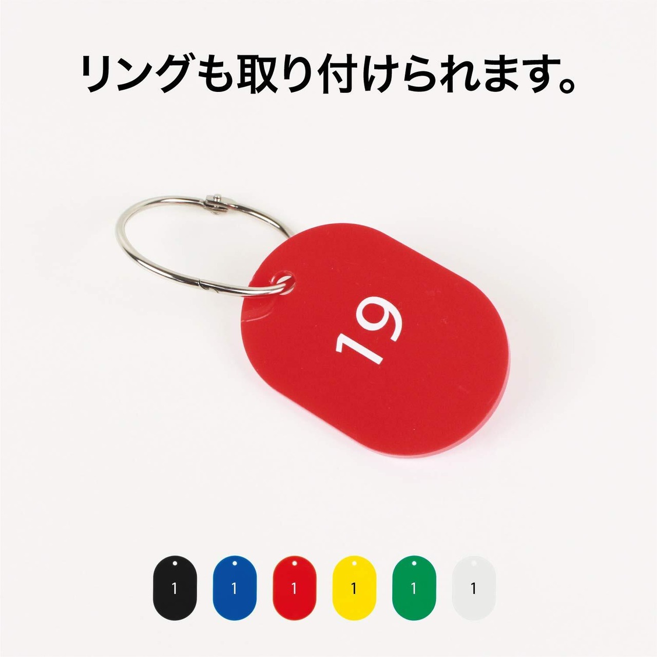 荷物や鍵、工具、配線等、あらゆる場面の整理・分類に最適な小判型の番号札です。