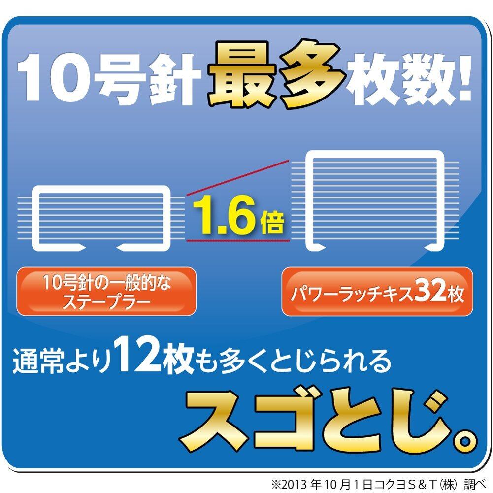 軽とじ機構搭載なので、いつも使用している10号針で32枚もの書類を軽くとじることができます。