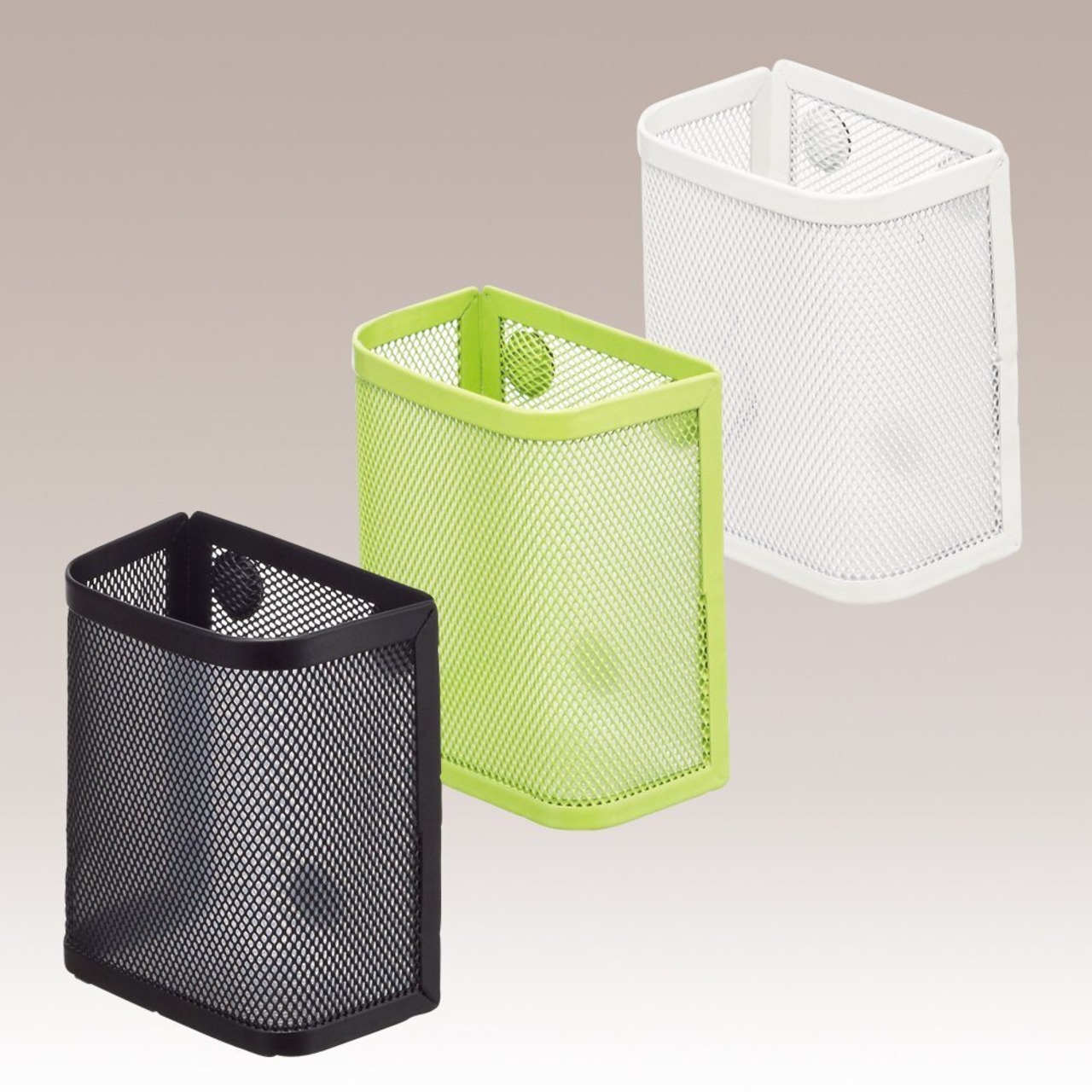 ペン立てサイズ。ハサミや定規などの収納に最適。強力なネオジム磁石を使用。接触部分保護用ゴム付き。(目安保持荷重 300g)