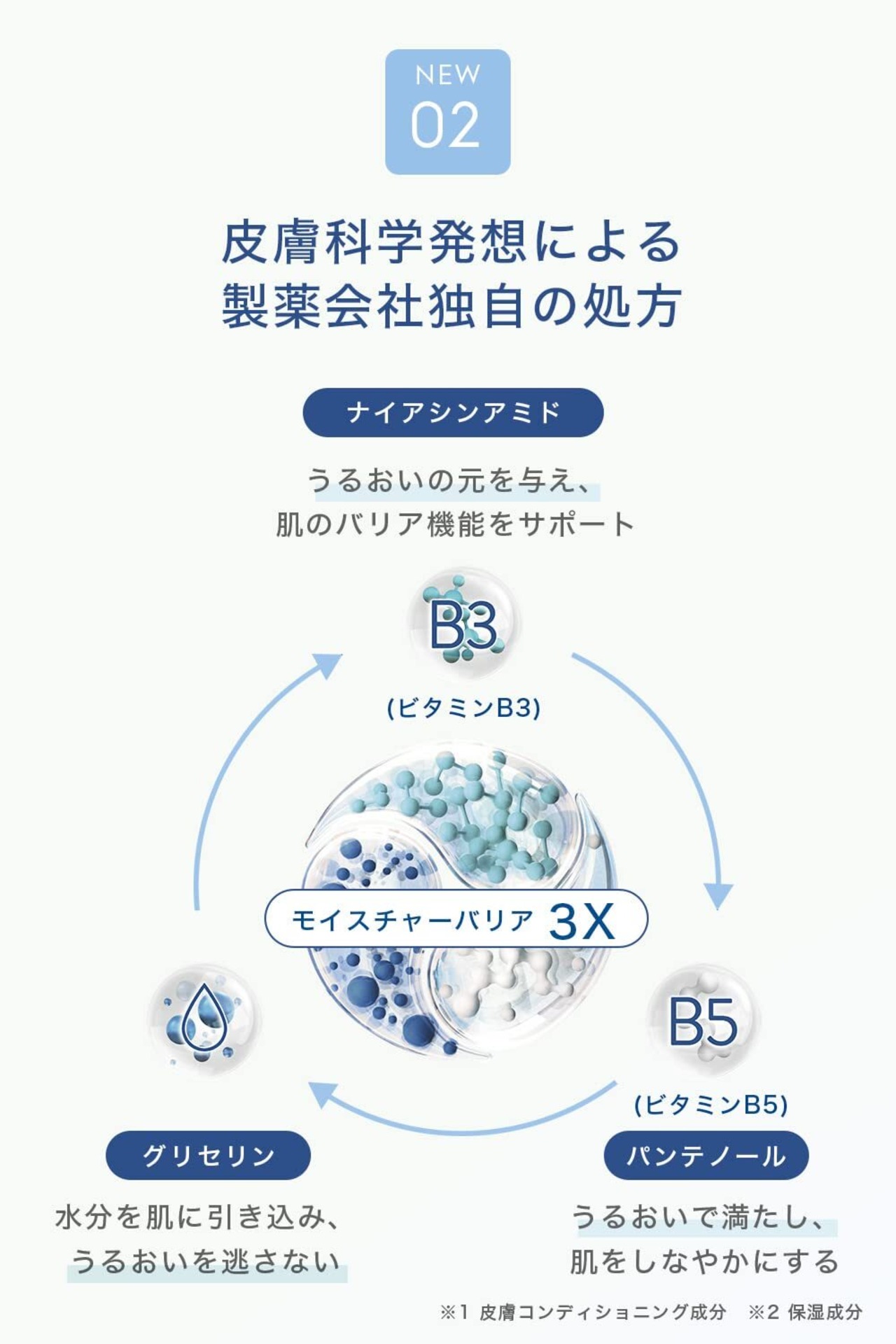 有効成分 ナイアシンアミド*1、パンテノール*1、グリセリン*2配合。*1: 皮膚コンディショニング成分 *2: 保湿成分