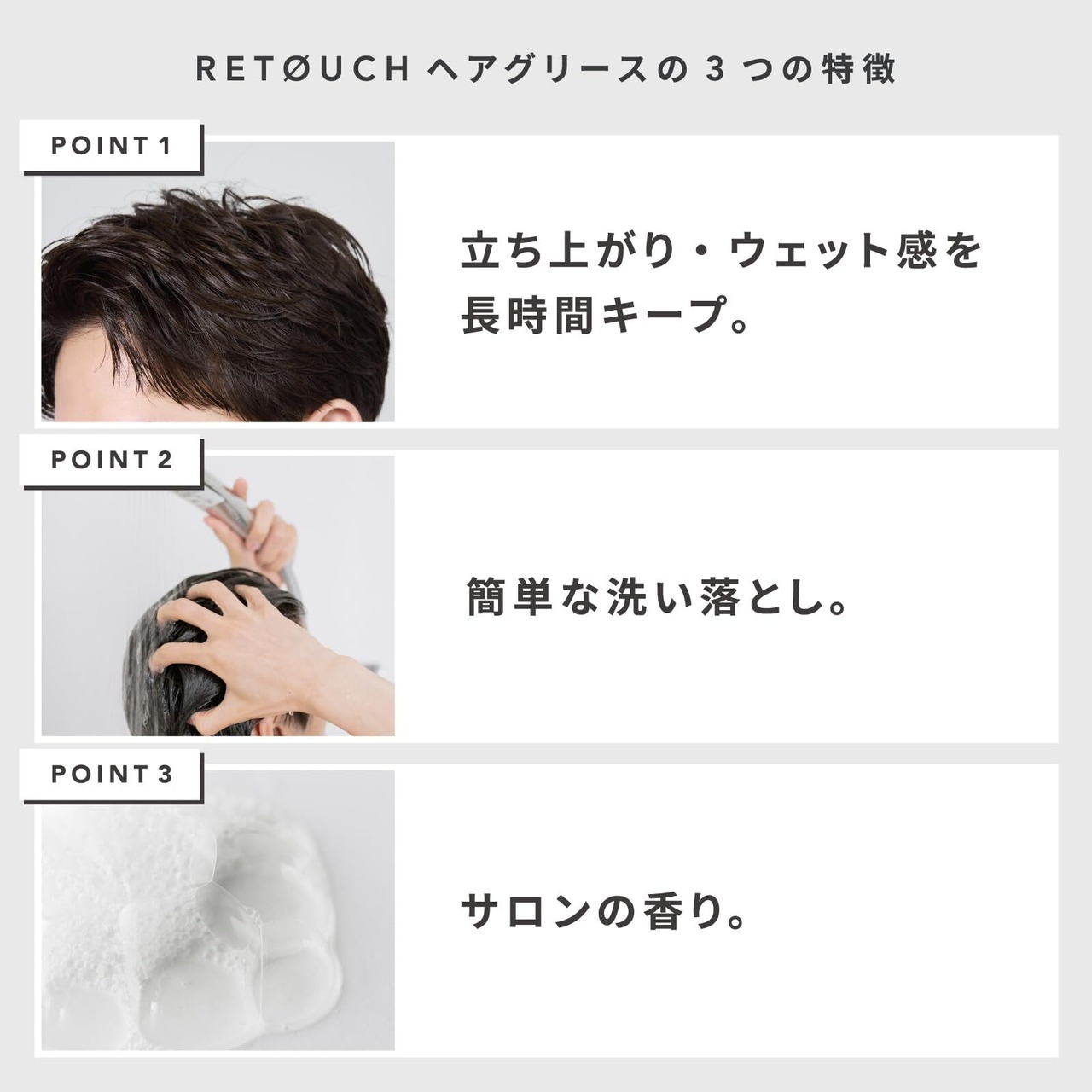 レタッチ RETOUCH ヘアグリース メンズ 濡れ髪 ハード キープ グリース ポマード スタイリング ツヤ 100g