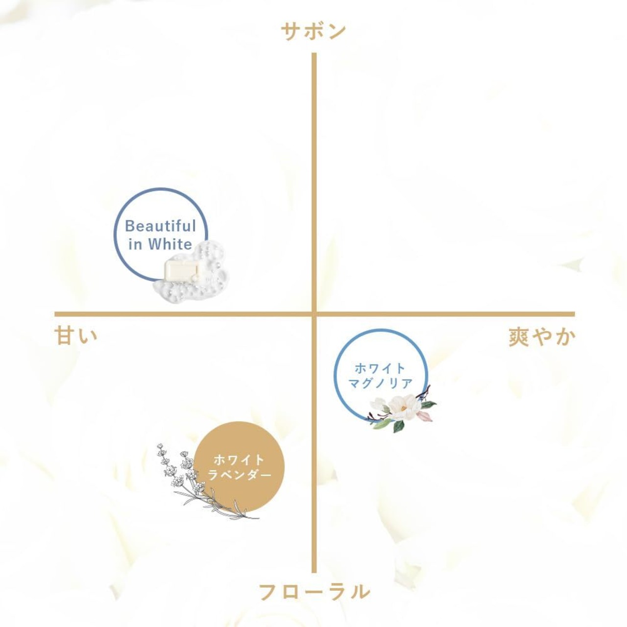 【 ホワイトラベンダー 】花びらに光る朝露をイメージした、爽やかで軽やかな香りです。 『TOP』:ホワイトラベンダー・アップル・ベルガモット 『MIDDLE』:ローズ・ユーカリ・セージ『LAST』:アンバー・バニラ・ムスク