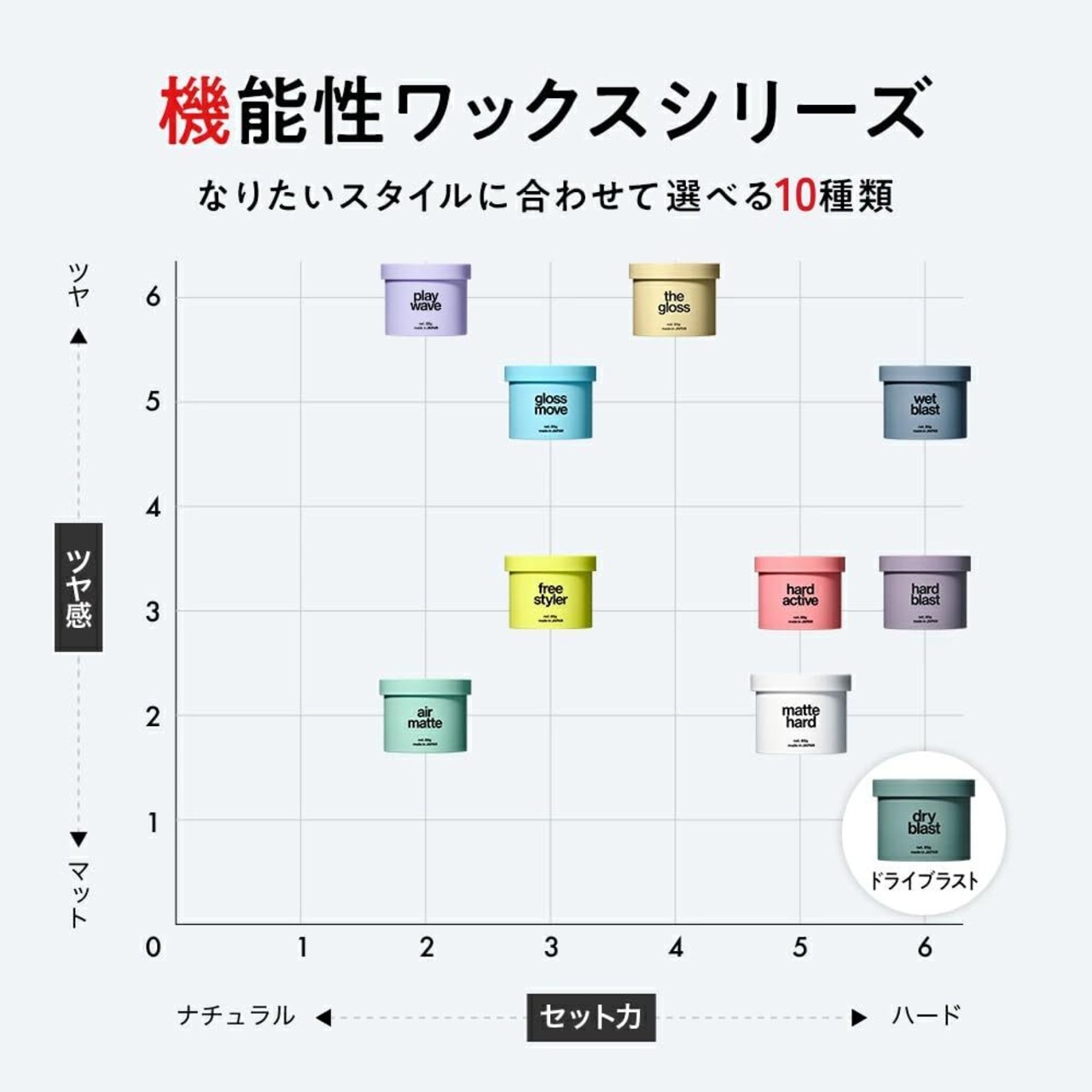 【ドライブラスト】スーパーマットなふわぼさ束感が自在に舞い散る、新感覚な超ドライワックス。スーパーハードなセット&キープ力、かつてない程のマット感!絶妙な軽さと硬さで、「ふわぼさ」なオシャレ束感をしっかりキープします。