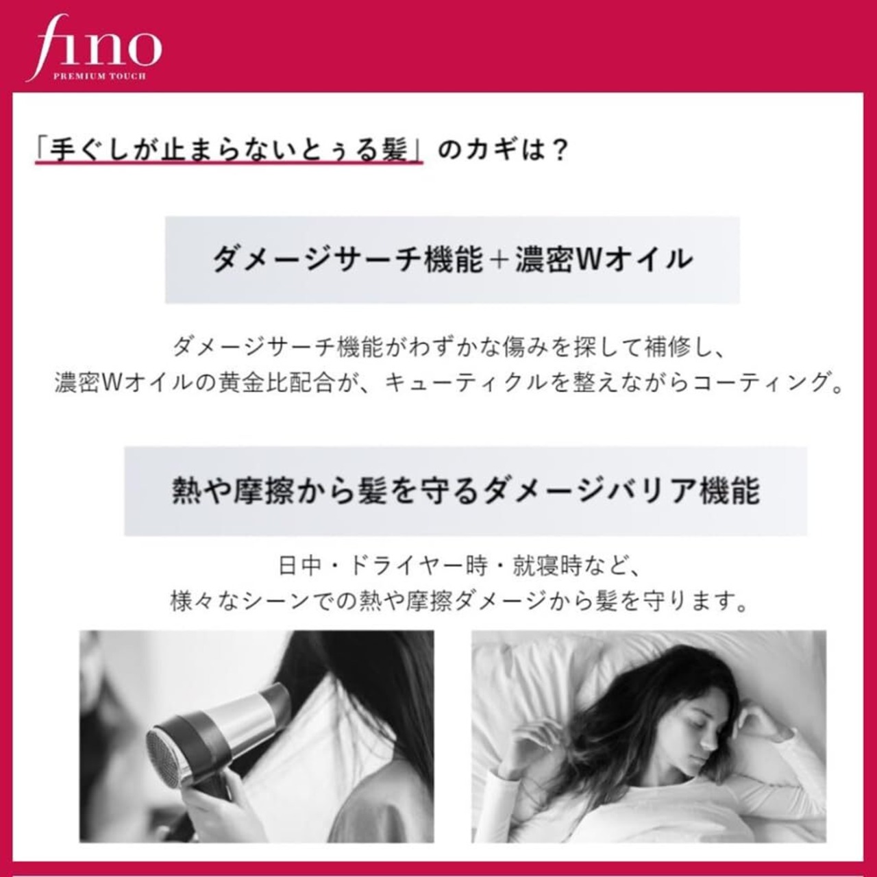 【ダメージバリア機能】日中・ドライヤー時・就寝時など、様々なシーンでの熱や摩擦ダメージから髪を守る