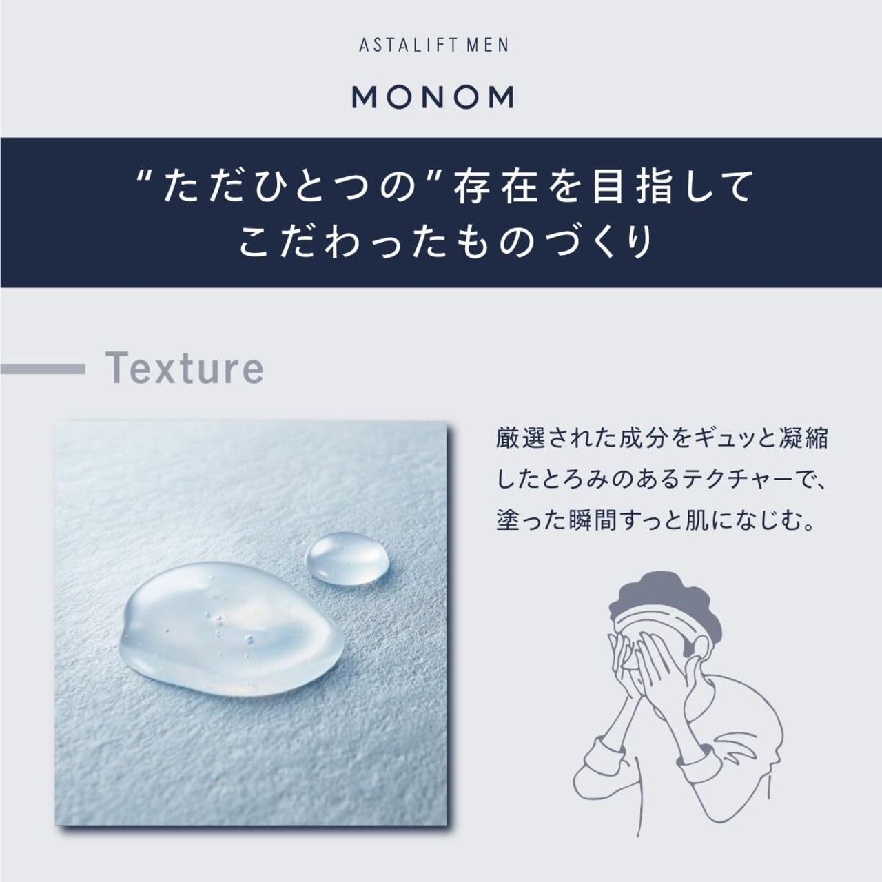 【とろみのあるテクスチャー】厳選された成分をギュッと凝縮したとろみのあるテクチャーで、塗った瞬間すっと肌になじみます。