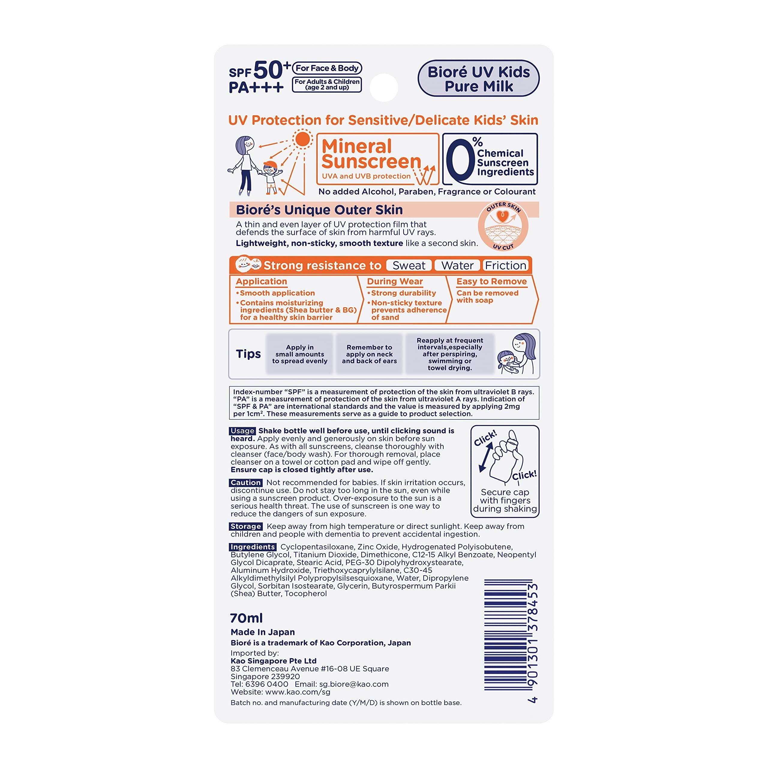 Bioré ビオレ UV キッズ ピュアミルク 日焼け止め 70ml SPF50 / PA+++ ミネラルバリアで守る紫外線吸収剤ゼロ処方のキッズUV 無香料