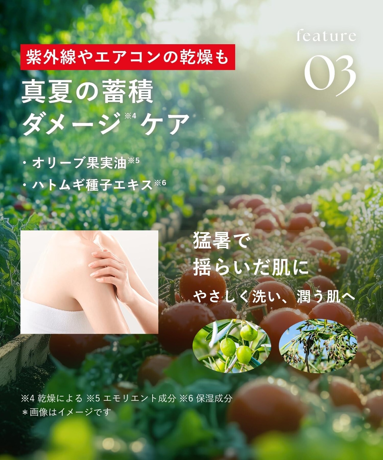 商品特長 しっとりと保湿しながら洗い、なめらかな素肌へ。